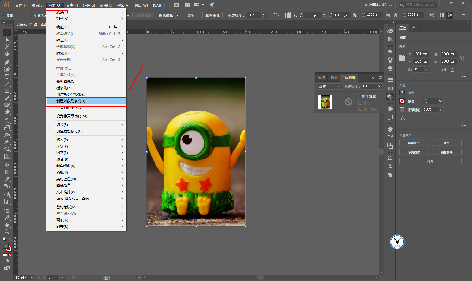 在选中对象的情况下,执行对象-创建对象马赛克: