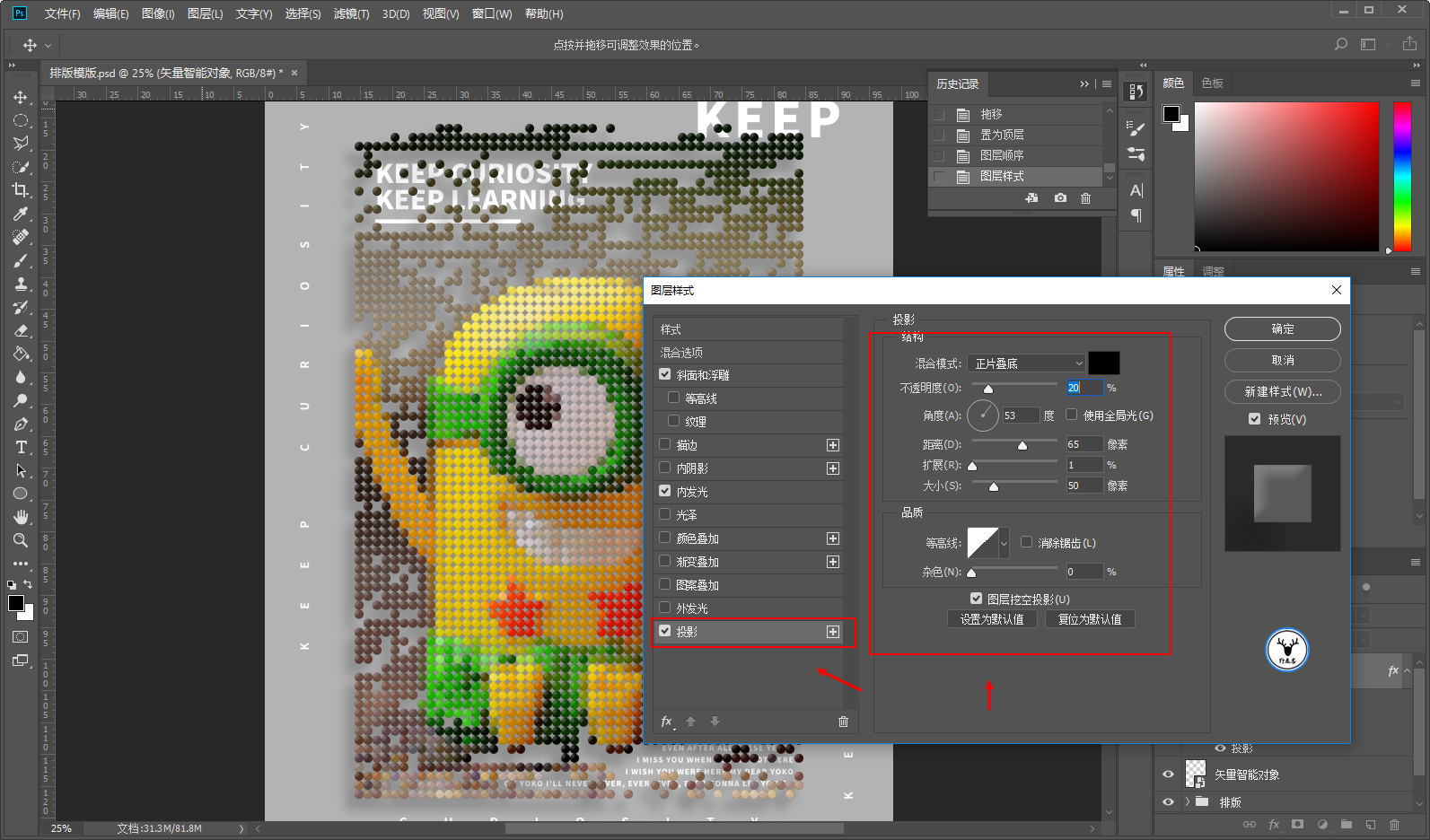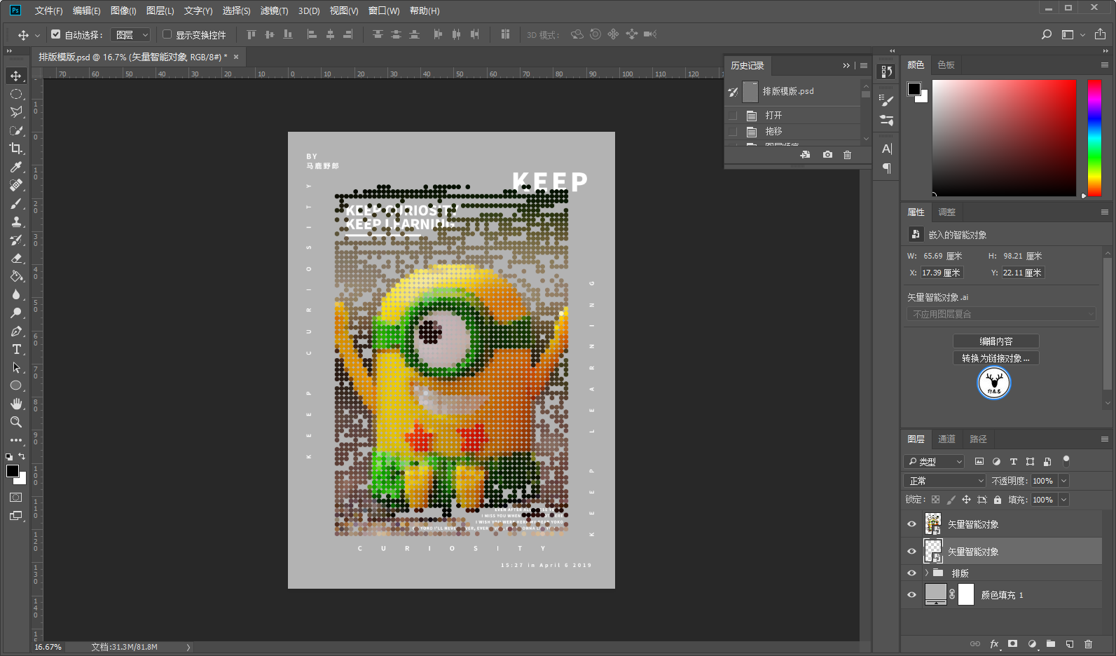 感觉差不多就可以到PS里添加效果了,把圆形对象和文字分别拖进PS,我这里事先做好了排版: