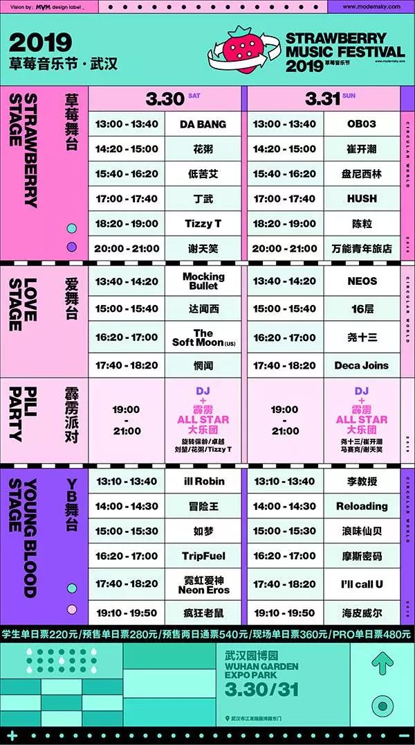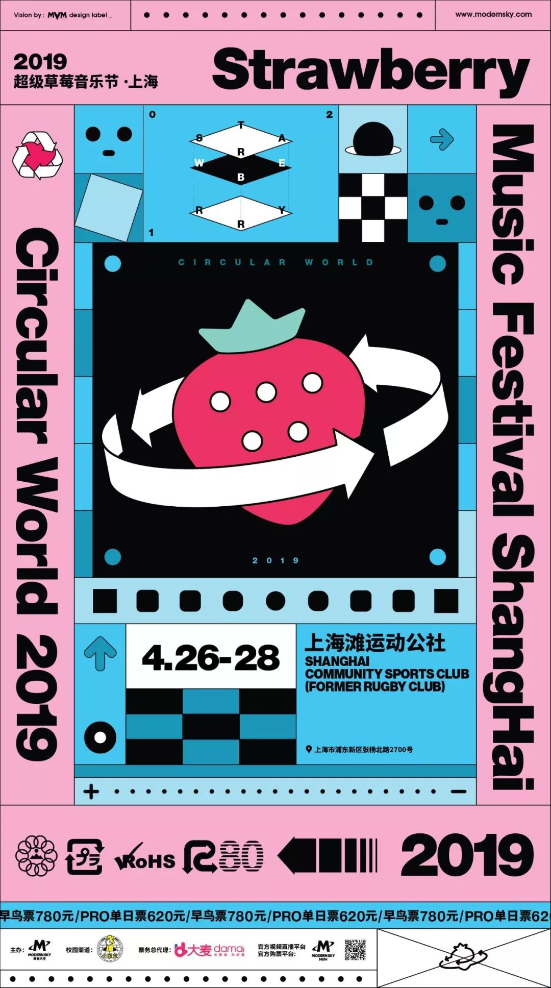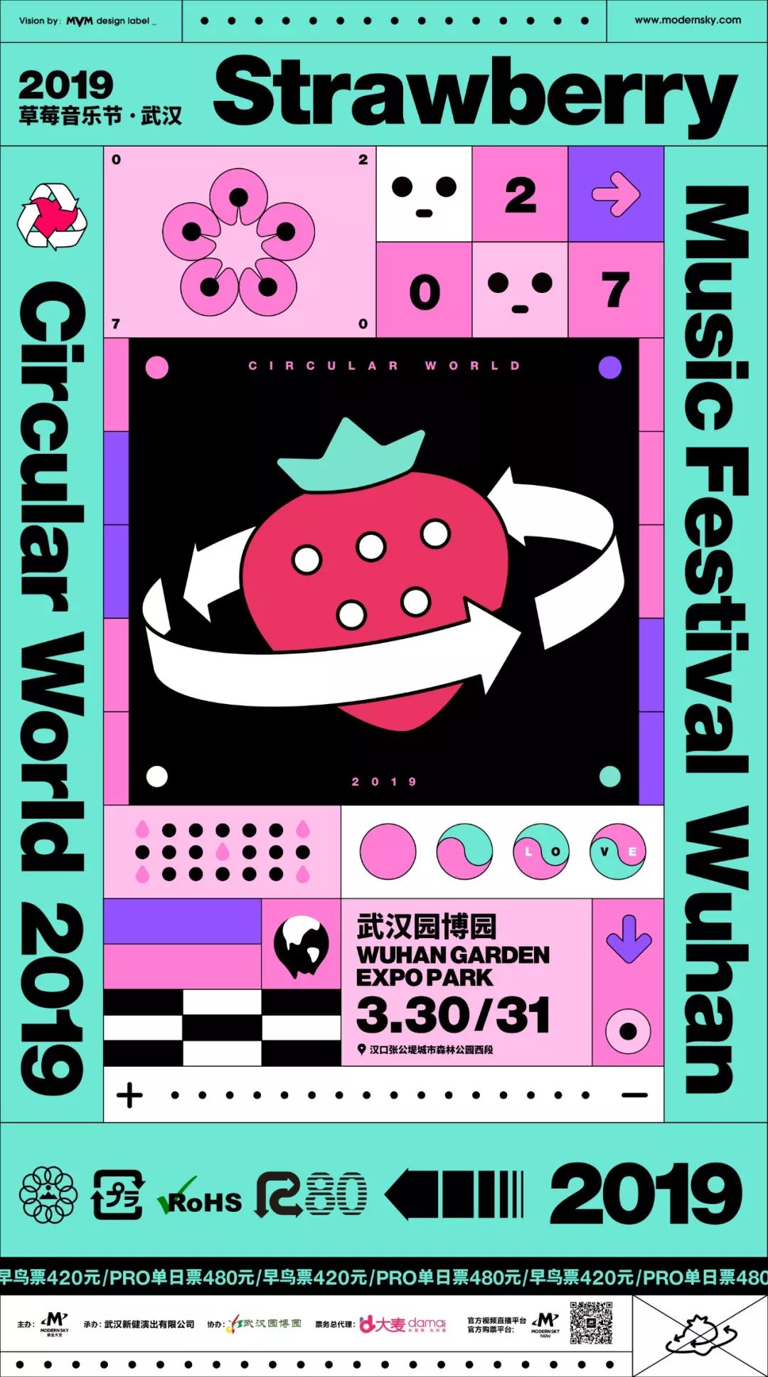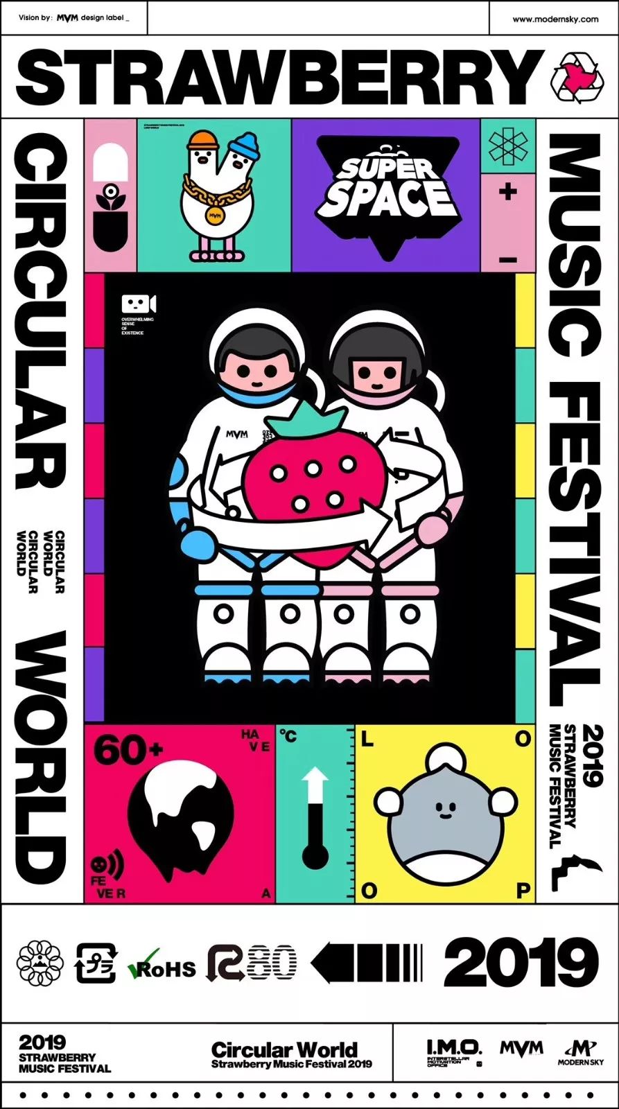 这张是今年的主视觉海报。今年,MVM特地为各城市举办的2019草莓音乐节单独设计了专门的海报,一样的版式,不一样的内容,既统一又包含新意。最设计搜罗了一番,我们来欣赏——