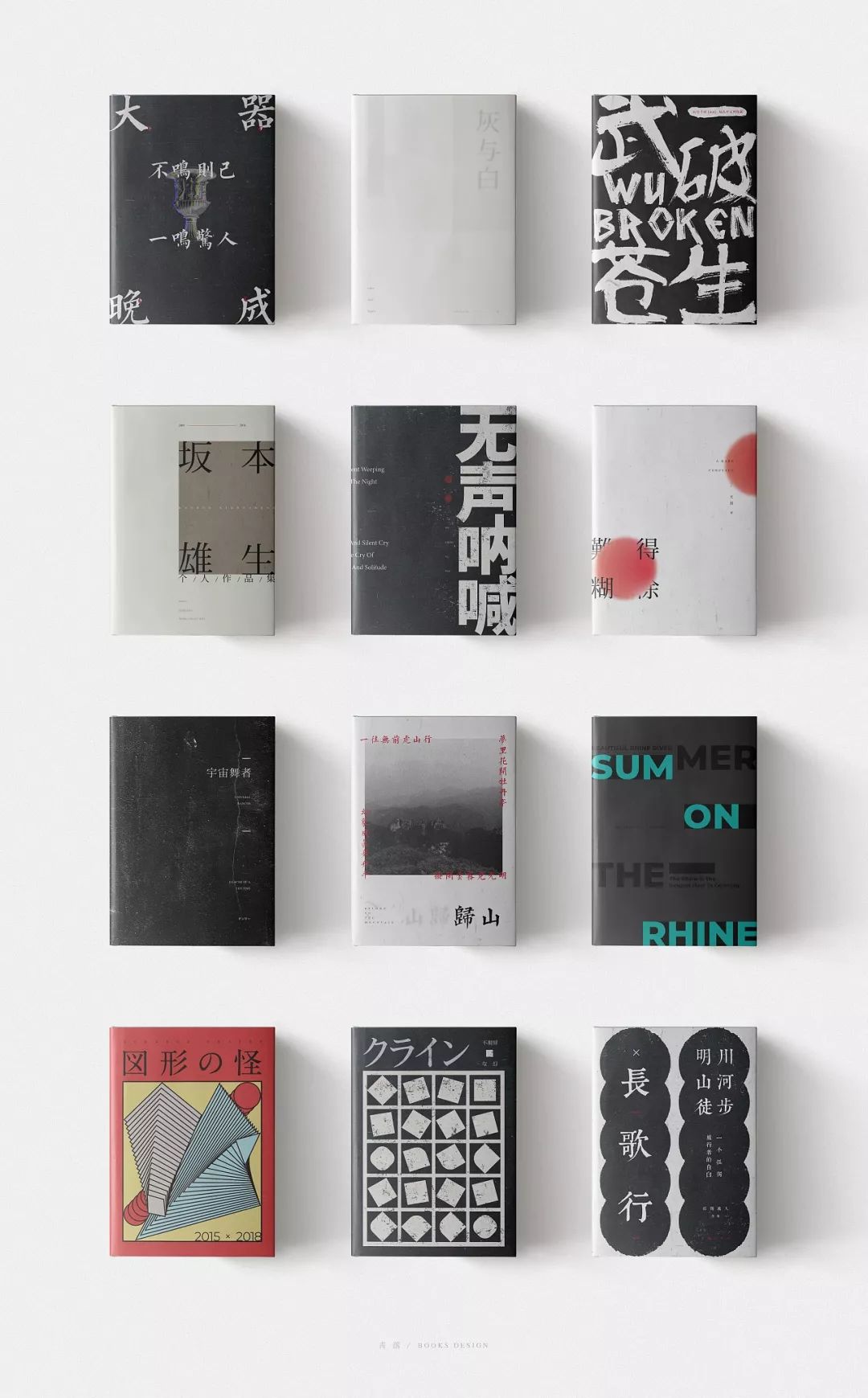 邹家东设计的书籍封面,不仅仅只有图片与色彩,文字排版也是他设计的重头戏之一,毕竟没有哪一本书的书籍封面设计是缺少文字的存在的。封面文字中除书名外,均选用印刷字体,故这里我主要介绍书名的字体。常用于书名的字体分三大类:书法体、美术休、印刷体。