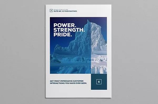 在封面中使用与内容或品牌调性相匹配的摄影图片,也是很常见的一种方式,如果只使用一张图片,通常的处理方式是让图片占比较大的版面空间,图片的轮廓也是以简单的几何图形最为常见,当然,这是指图片为非去底图片的情况。