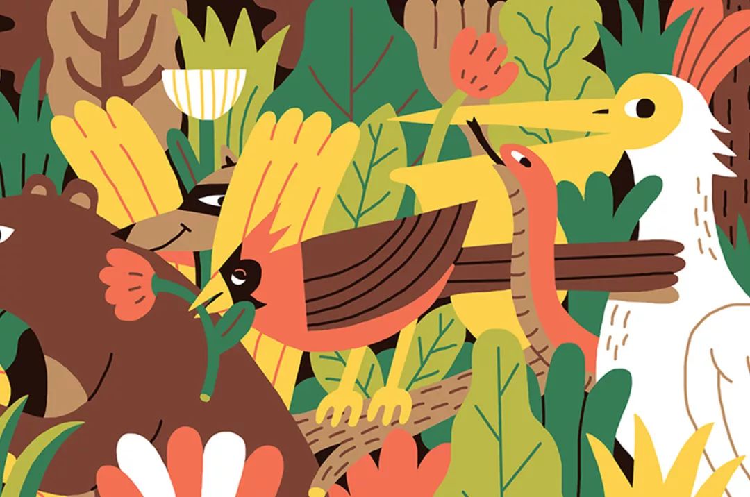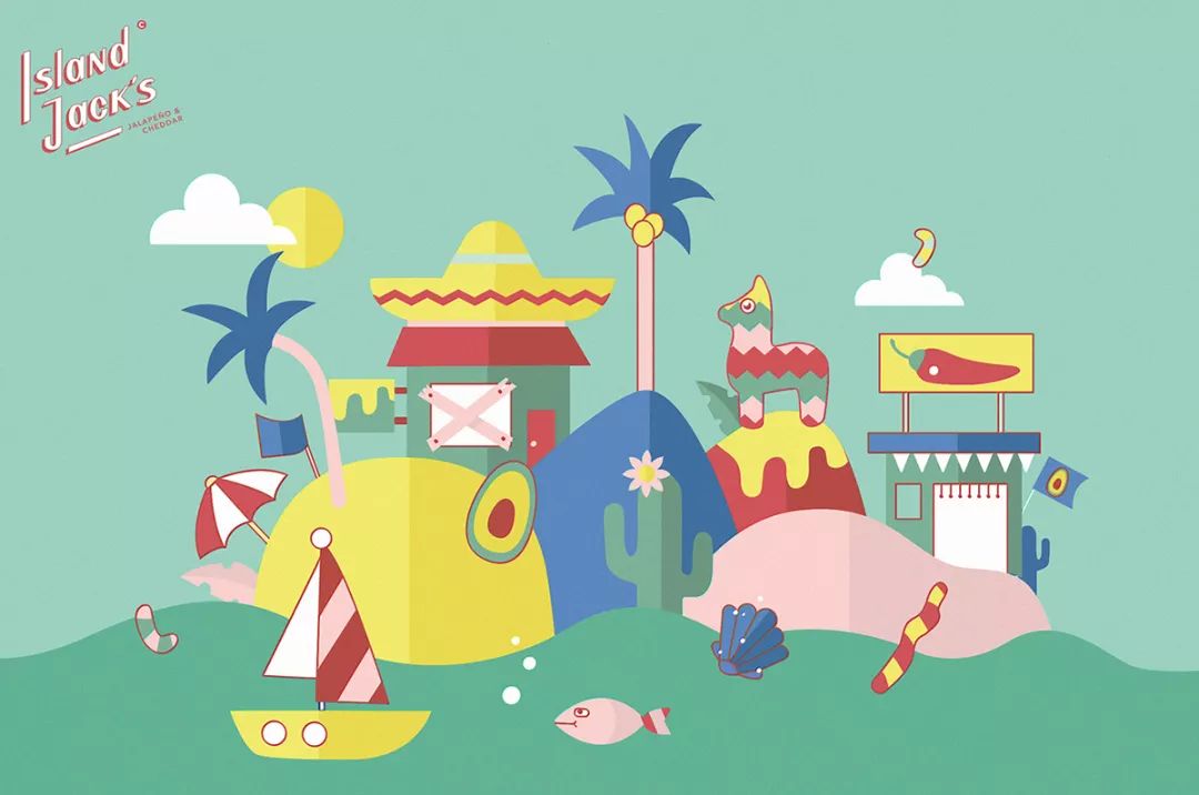 噪点插画则是在扁平插画的基础上叠加了颗粒肌理的插画,也可以叫做颗粒风插画、杂点插画,应用和扁平插画同样广泛。如果单一色块的表现方式难以激起你内心的小波澜,那么这种能够塑造超强质感的噪点插画一定会让你心跳加速。