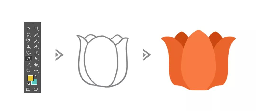 TIPS:为了物体对称我只会勾勒单侧花瓣,接着复制粘贴(Ctrl/Cmd+C>Ctrl/Cmd+V),并将其翻转(Ctrl/Cmd+T)成另一侧。