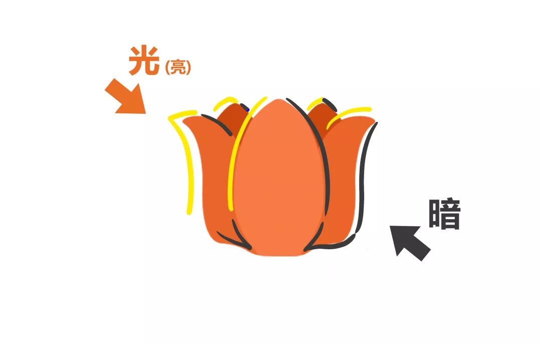 首先我们需要设定统一光源,这里我把光源统一设定成左上方打下来的。那么物体所有左上的面都是亮面(受光),而物体所有右下的面就是暗面(背光)。