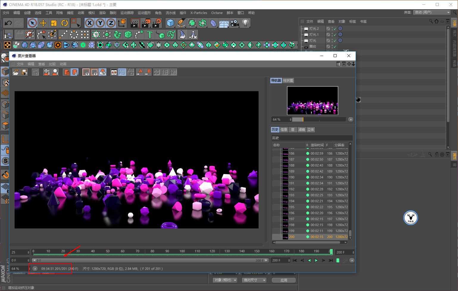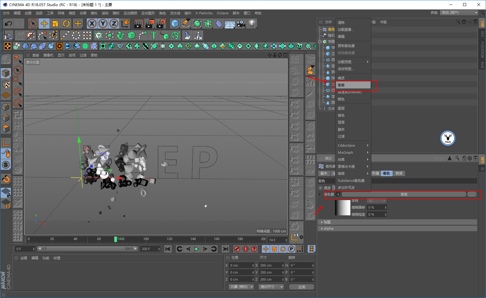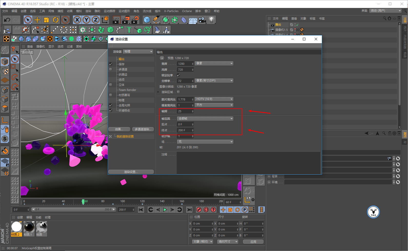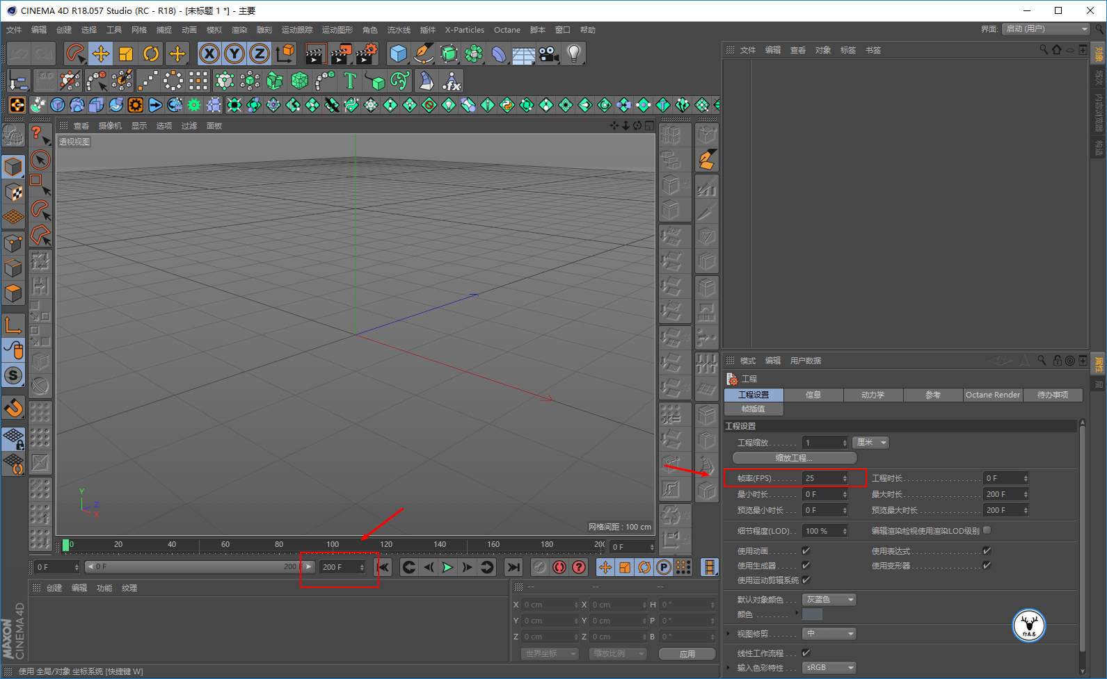 打开C4D,先把帧速率设置为25帧,我这里就做200帧的动画吧:
