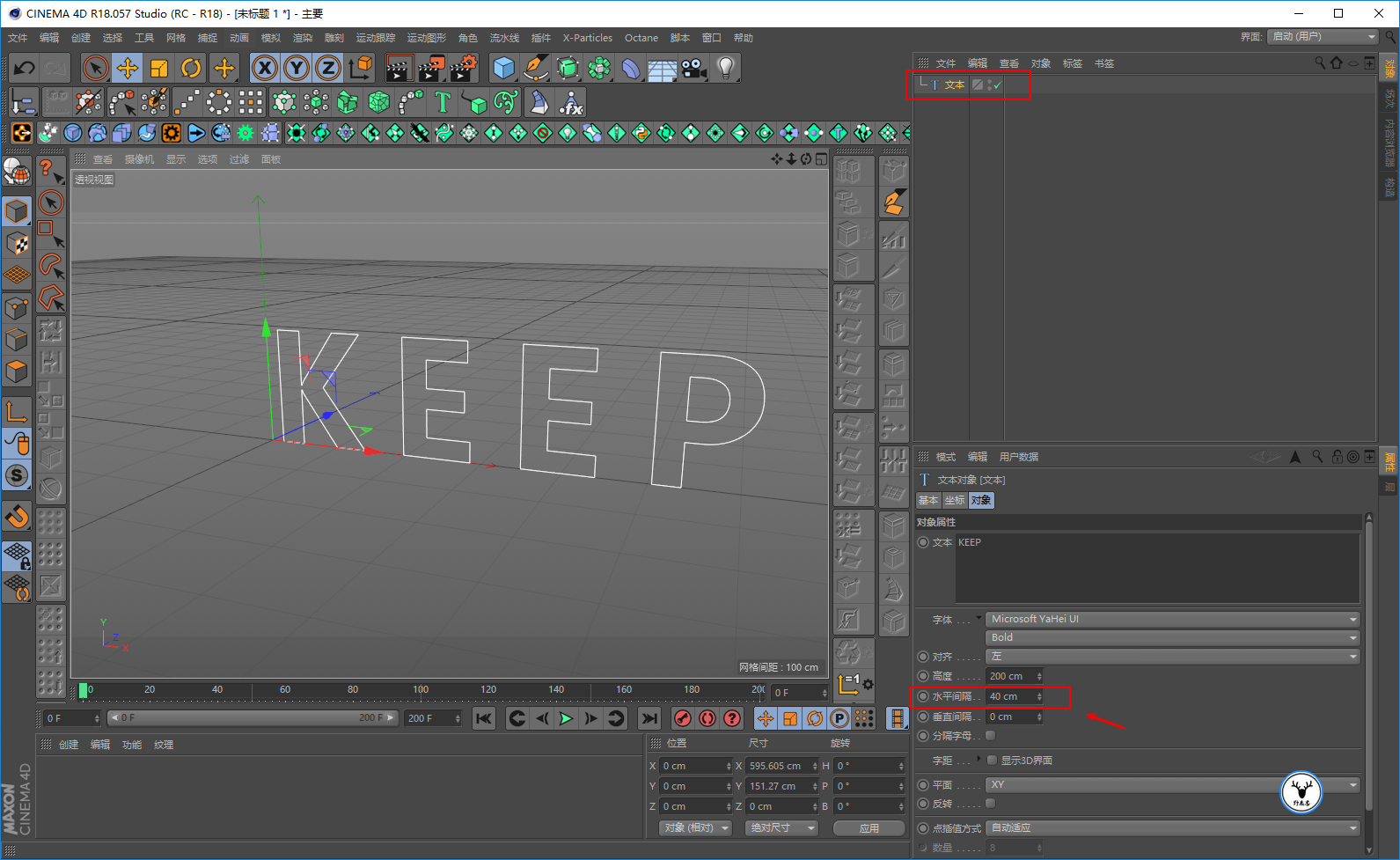 新建一个文本样条,选择一个粗一点的字体,文本的间距可以适当拉开一点: