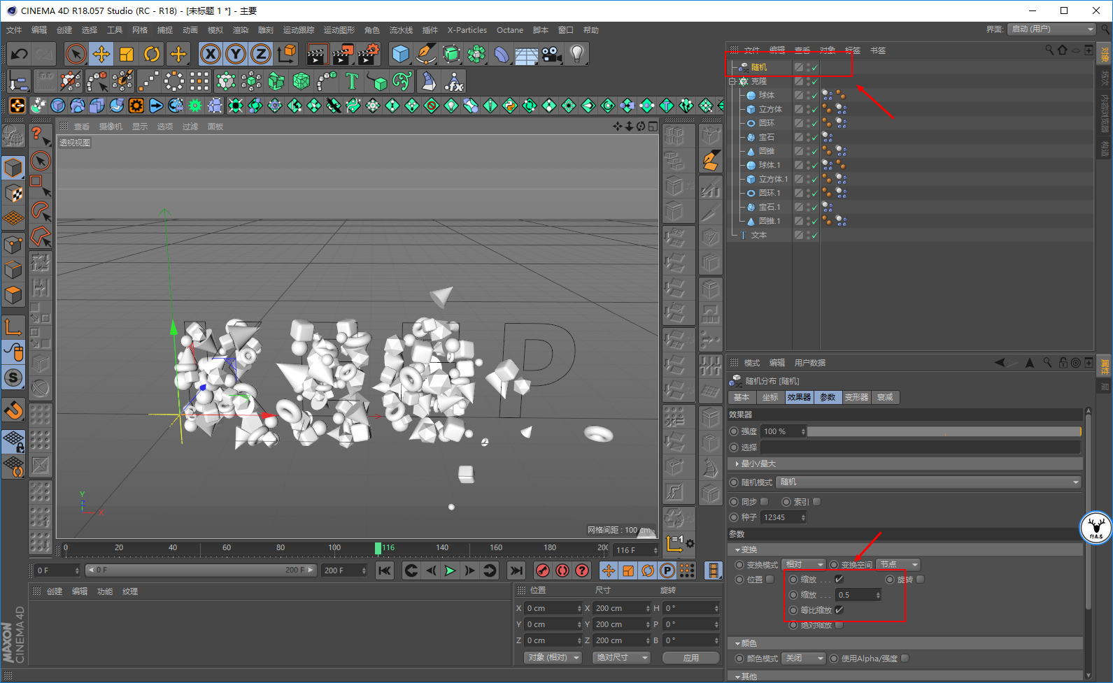 当然你还可以添加一个随机效果器,去随机几何体的大小,基本上动画就做好了,不难吧:
