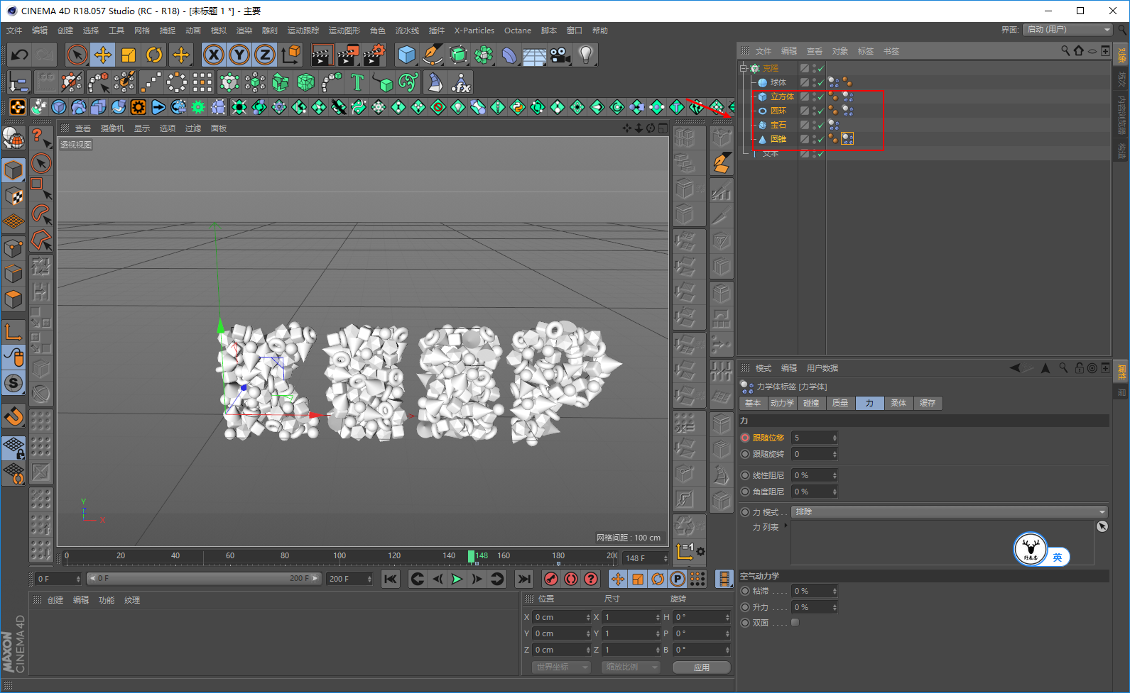 我尝试了一下,其实动画部分并不是很难,主要是克隆再加上动力学的运用。
