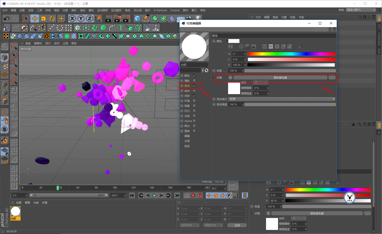 但是只是这样的话还不够好,因为仅仅通过着色效果器添加的颜色,对象不会有反射或者发光一类的信息: