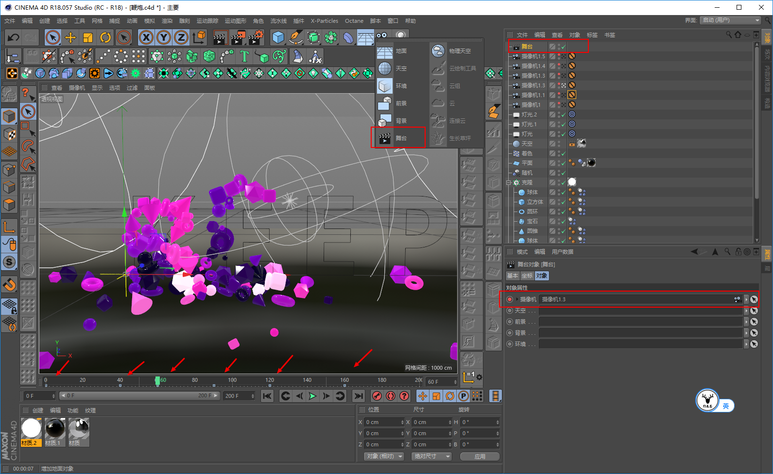 然后再通过舞台K关键帧来控制每个摄像机的持续时长,舞台的使用方法以前分享过,这里就不赘述拉: