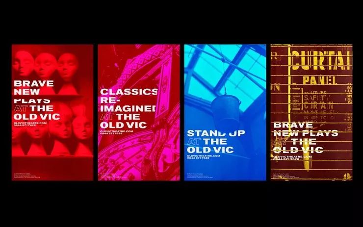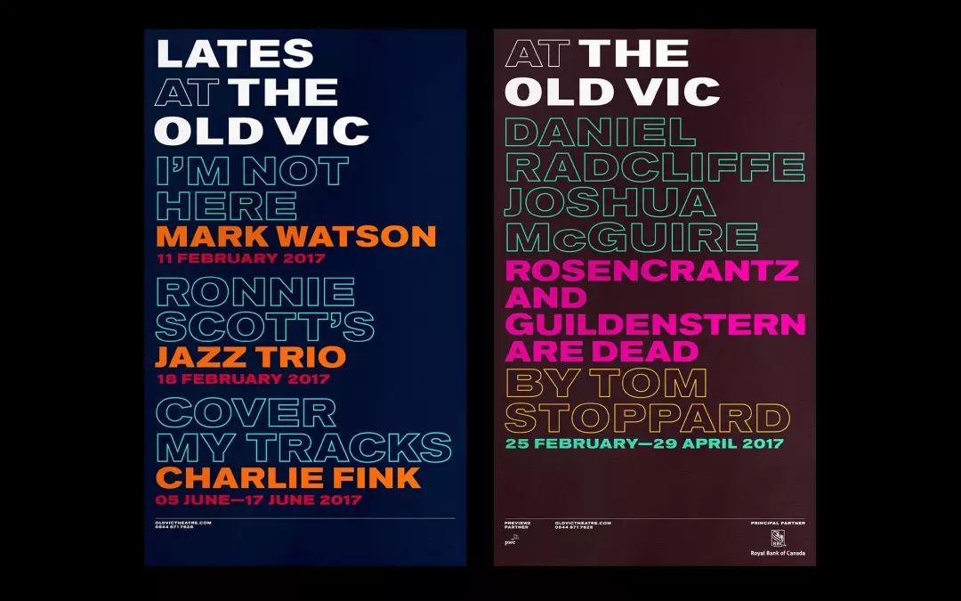 老维克剧院的视觉形象再设计是我(哈利·皮尔斯)近期的一项重要作品,原来的视觉元素和海报主要是名人摄影,带有一种特殊的好莱坞色彩。我们和新艺术总监马修·瓦克斯一起开始工作,他想摆脱这种方式。于是,我们删除了图像。我们做的每一件事都与排版有关——仅仅以文字的形式,文字可以通过这种纯粹的形式赋予了剧院一种身份。当我去布里斯托尔的老维克的海报档案馆时,我发现了这种方法,我发现了很多。如果你回到过去,99%的海报纯粹是用文字制作的。他们真的很特别。