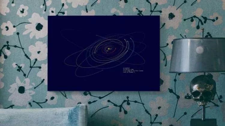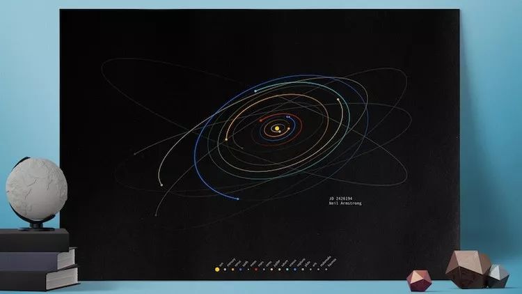 而在几百年后的今天,我们只需按一下按钮,就能精准且快速的观测太阳系了,借助NASA的数据和算法,“celestial moments ”能精准的制作出你生日那天太阳系各星球运转的图像,并制作成海报,就像人的DNA一样,没有两张海报是完全一样的。