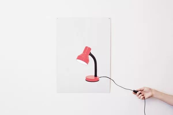 每张海报旁边都拖着一条长长的电源线,别以为它只是设计师的恶趣味!当你真正控制开关时会惊喜的发现,海报上的灯是真的可以亮,时钟真的可以显示时间、甚至扬声器也可以放出音乐!这大概就叫做“出人意料”的设计吧!