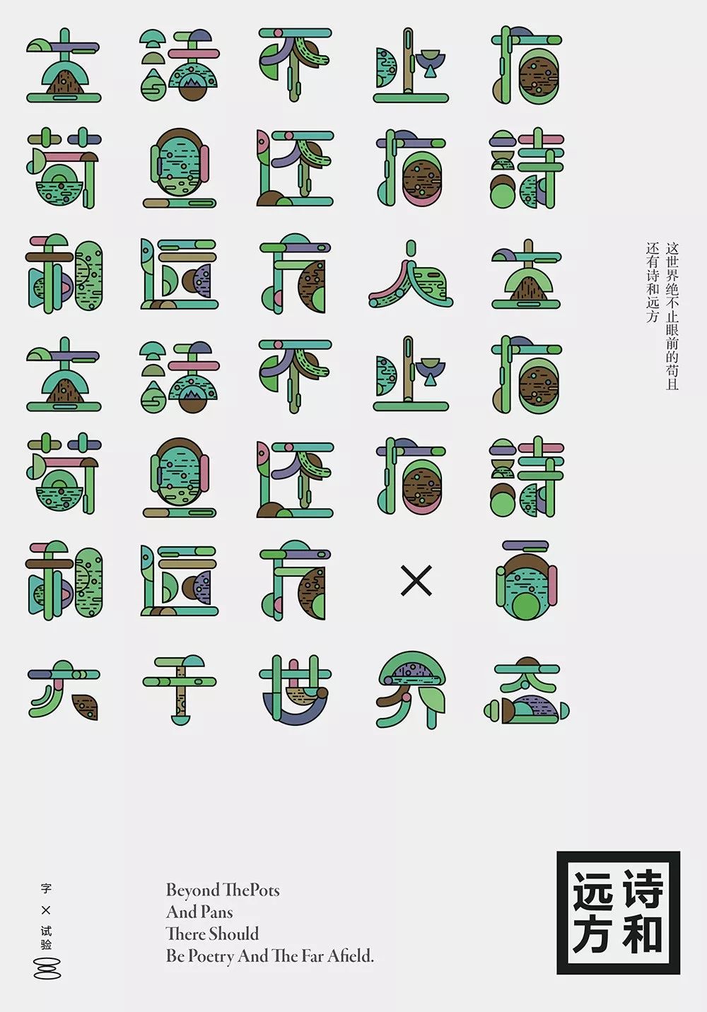 除了诗和远方,还有这组实验字体,文字择于高晓松填词的歌曲《立秋》。
