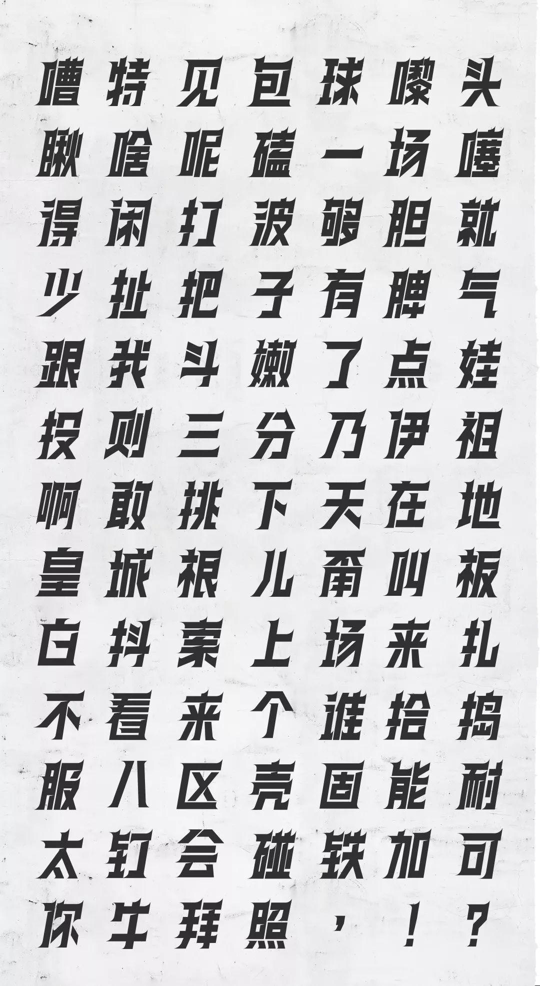 字体从”要疯“的概念出发,通过将字体变形特殊处理赋予字体”要疯“的特性和新生的姿态,坚实可靠而蕴含力量,混合了新生力量与传统积淀。