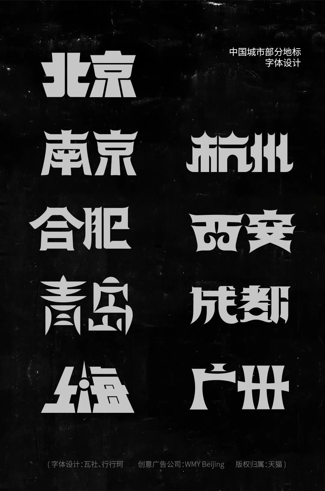 这是瓦社老师联合行行珂和WMY合作的一个项目,项目需求分为2部分,一个是结合各个城市不同的地域特色,为14个城市设计专属的城市字标,配合线上、线下活动来展示各个城市和战队对于“速度、竞技、热血”不同的诠释,另一个是要延伸一套将城市地域文化、人文精神、战队特点紧密融合的城市地标以及活动专属字库,并结合各地方言为城市喊话。因为是篮球运动,考虑到体现速度和竞技碰撞的这种激情,所以字型稍微的倾斜,风格整体比较硬朗,在细节上加了一点能体现“风”和“速度”的元素。