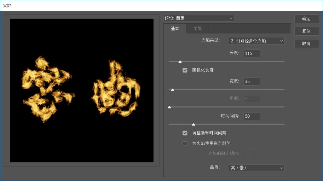 右键创建工作路径,再复制一个图层,执行滤镜>渲染>火焰。