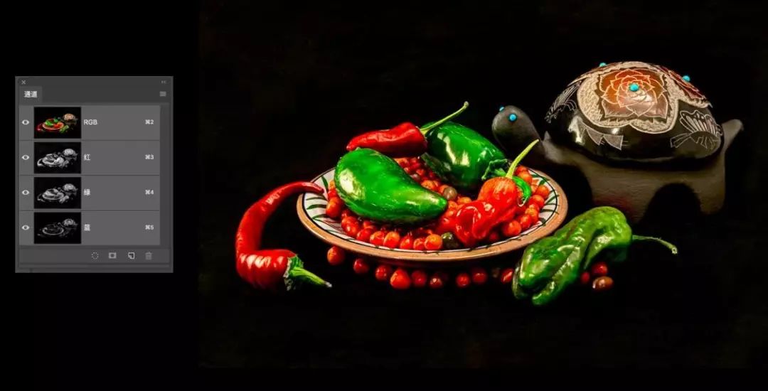 第三,要看色调差异,它就不像色彩差异那么直观了。色调主要针对的是黑白灰的层次,只有具备了足够的色调差异,我们才能分辨出各种物体,那该如何判断根据色调的抠图呢?对于ps来说,任何一副彩色图像都可以生成黑白灰的单色图像,而红色、黄色、蓝色等有彩色,不过是不同明度的灰色而已,因此我们可以利用图像与背景之间的差异来选择对象,那么问题来了,我们该如何判断图片是否存在足够的色调差异,想必很多同学有了答案,就是通道,只需要观察通道里的灰度就能辨别,然后再去判断用什么工具抠取最为合适。