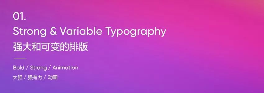 排版一直是设计的重要元素,也是传达品牌强烈信息的手段。从去年开始,粗大的无衬线字体和强有力的排版被应用到许多品牌设计当中,这使得它成为平面设计趋势的一部分。此外,也有越来越多的品牌采用动态和反映了3D趋势的三维字体版式设计。