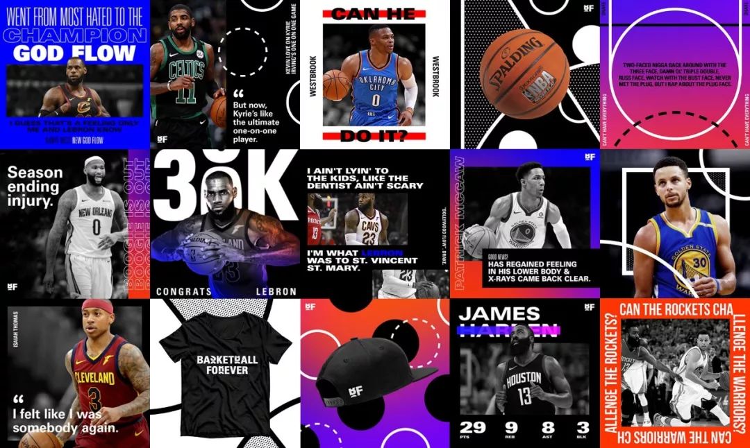 NBA品牌重塑项目所使用的,诸如彩色渐变和大胆排版的设计方法,也反映了最新的趋势。他们创作了一个系统,通过各种颜色,字体和布局的应用,可以产生各种图形输出。