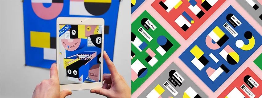 尽管是印刷海报,它也允许人们通过印刷材料使⽤3D AR技术获得交互式体验。印刷海报只包含简单的几何图形和极小的信息,但当你通过手机查看时,将看到获得更多的信息和看到立体的形状。