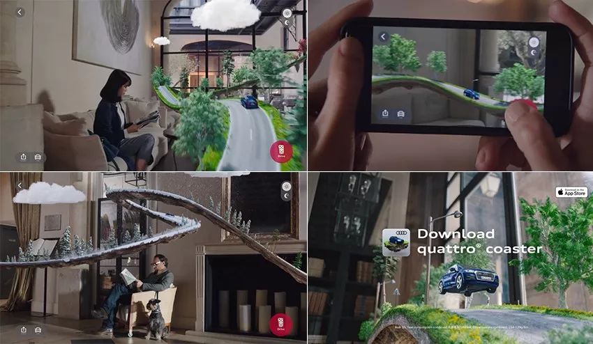 这是奥迪利用AR技术的项目,它能让消费者将汽车从银幕上带到自己的位置,从而积极体验开车的快感。
