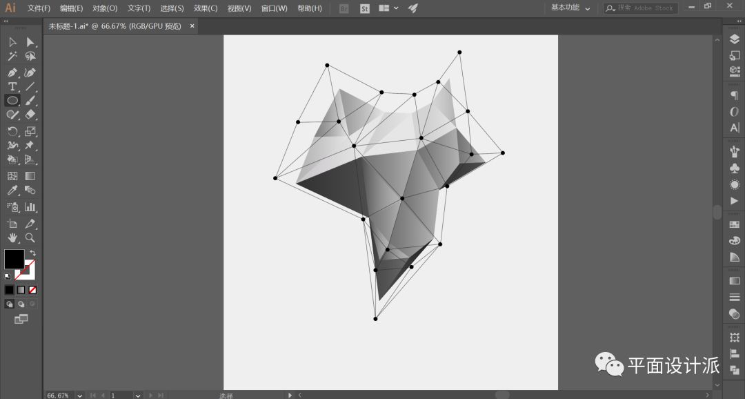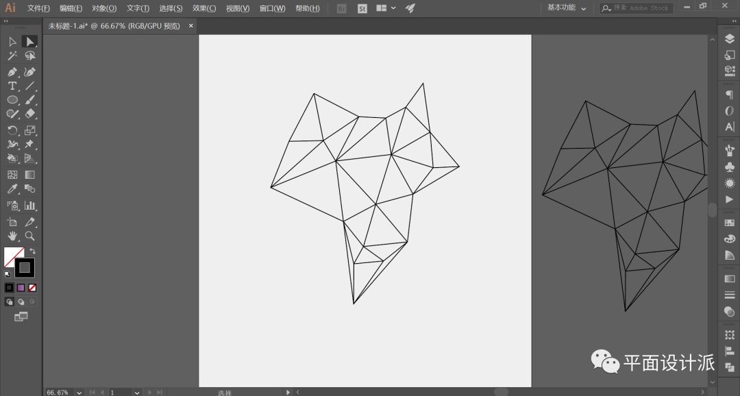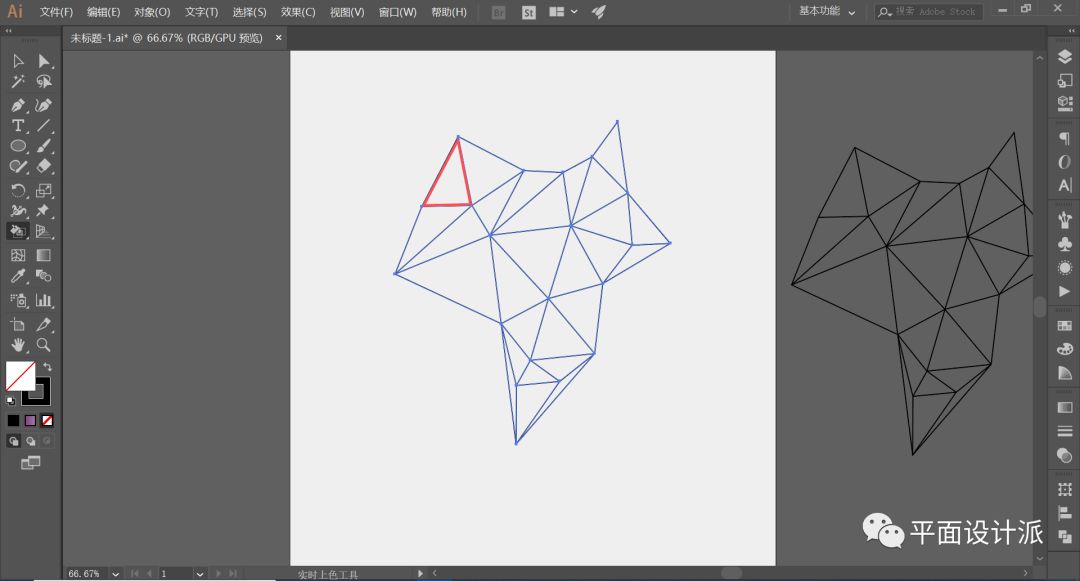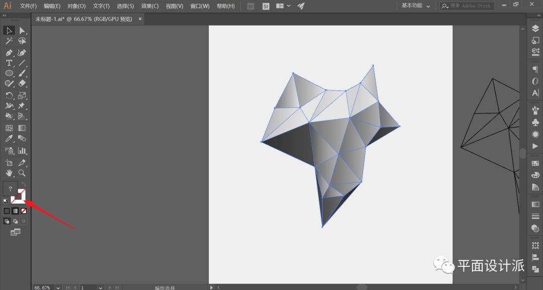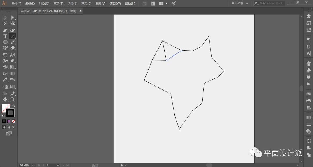 选择钢笔工具,仅取消填充。将你要制作的低多边形外形描绘出来: