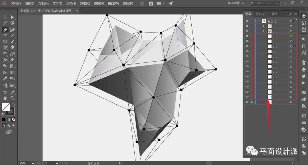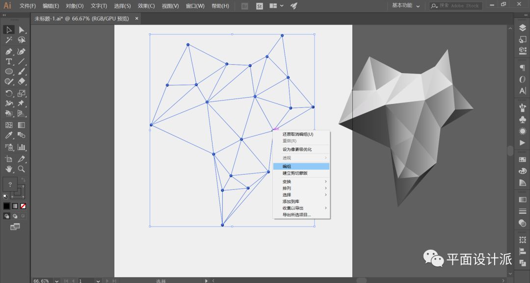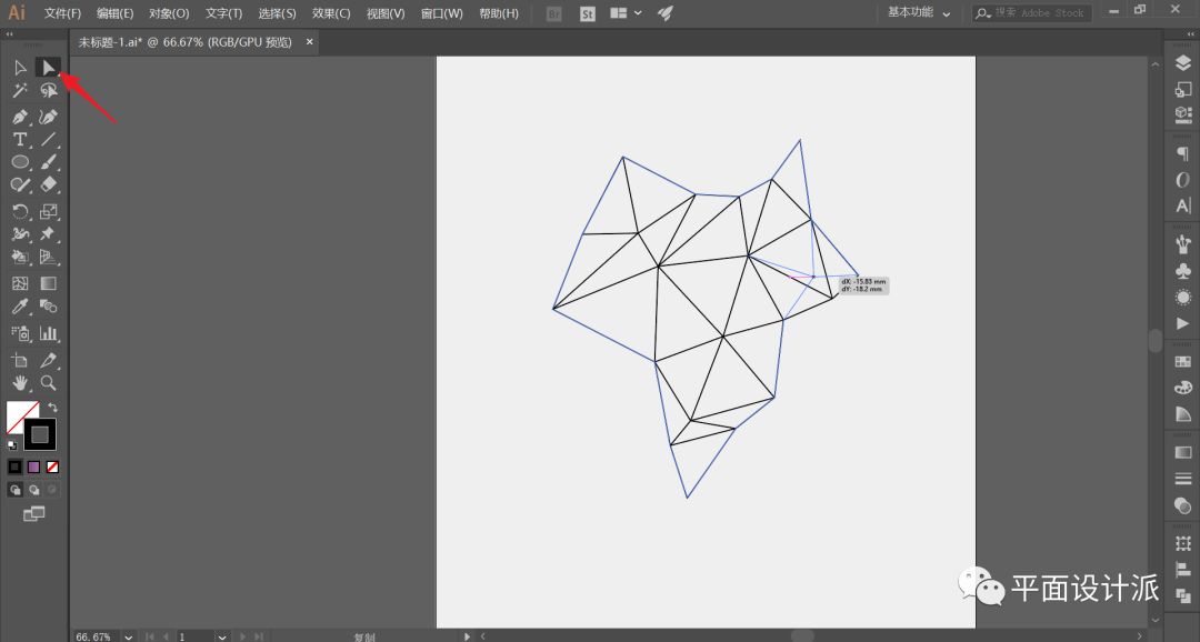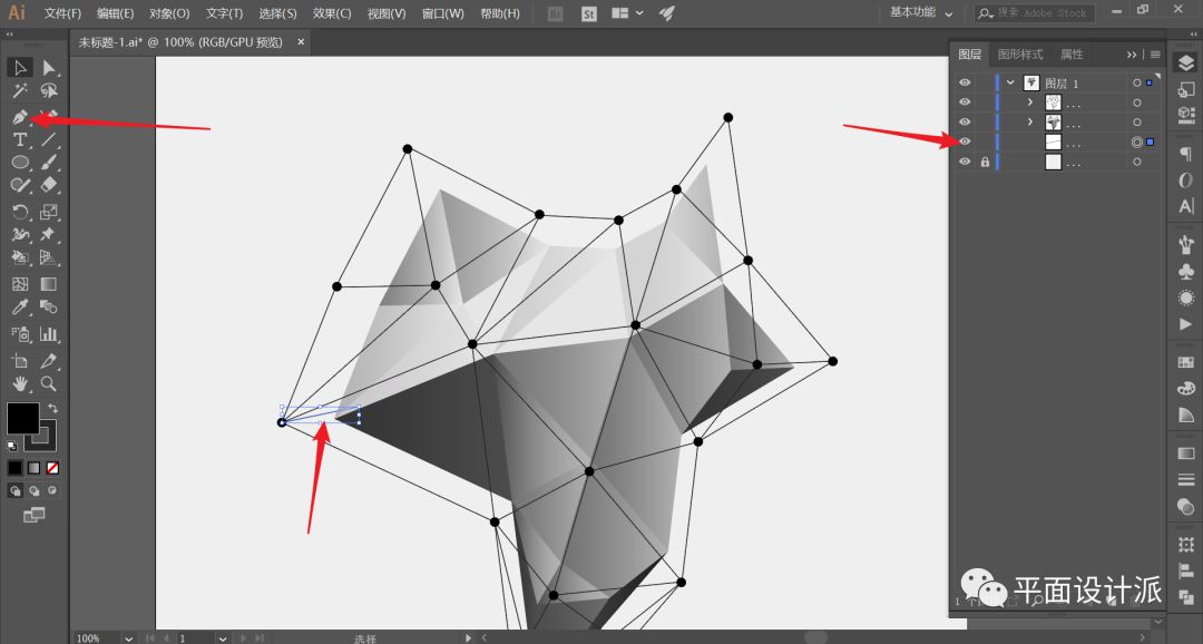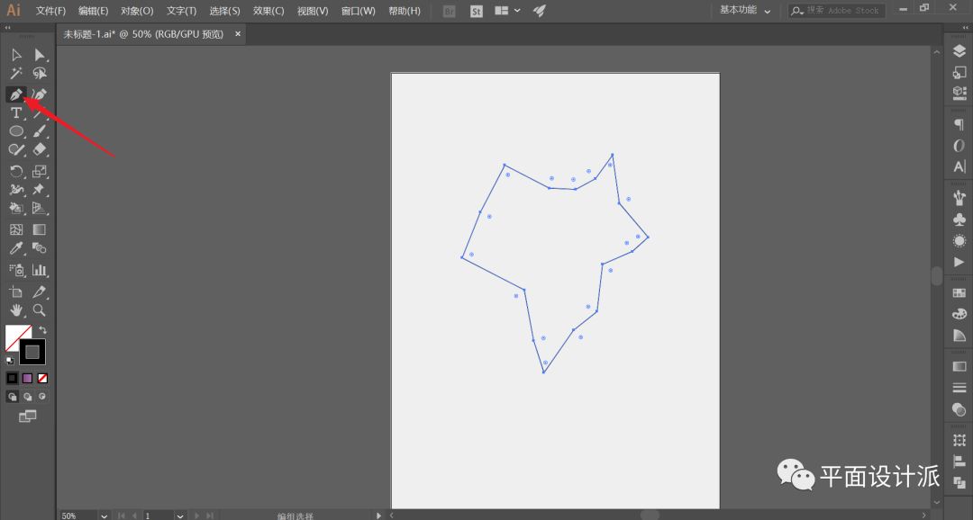 选择钢笔工具,仅取消填充。将你要制作的低多边形外形描绘出来: