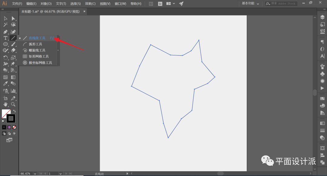 接下来,内部线段我就不选择钢笔工具,钢笔工具在这种情况下显得不方便。所以,我们选择直线段工具: