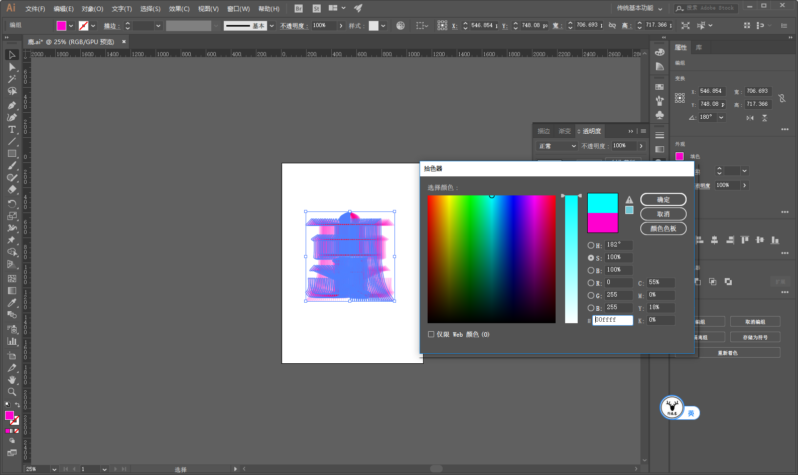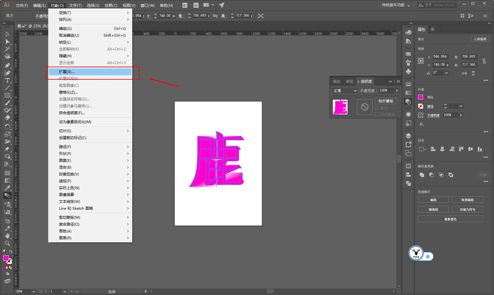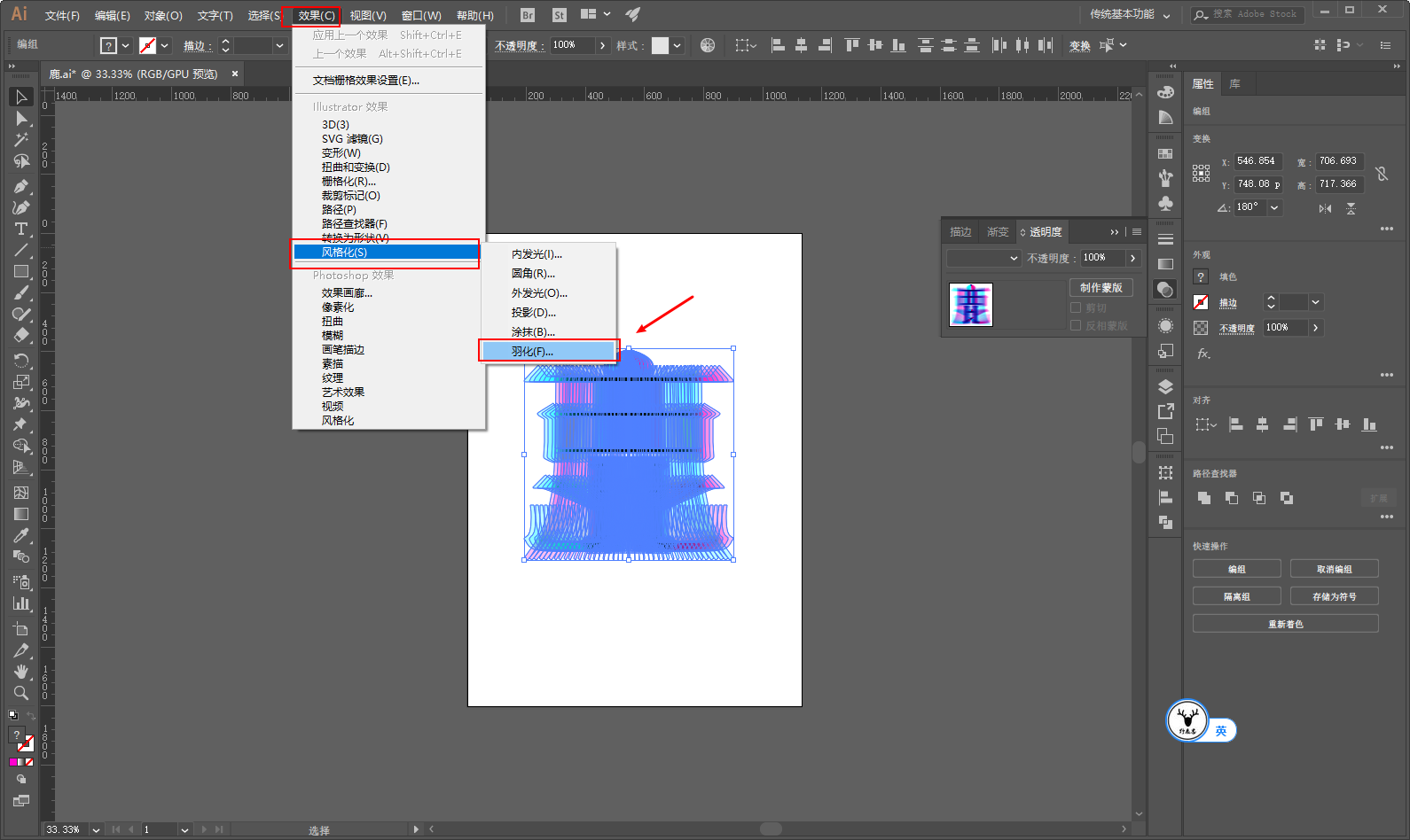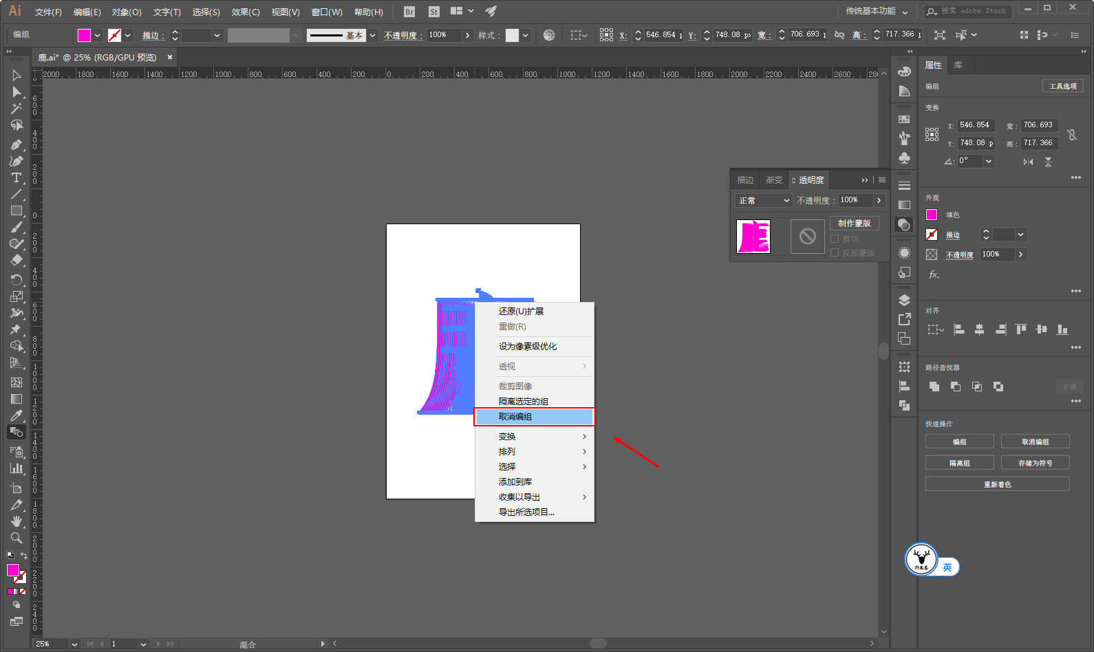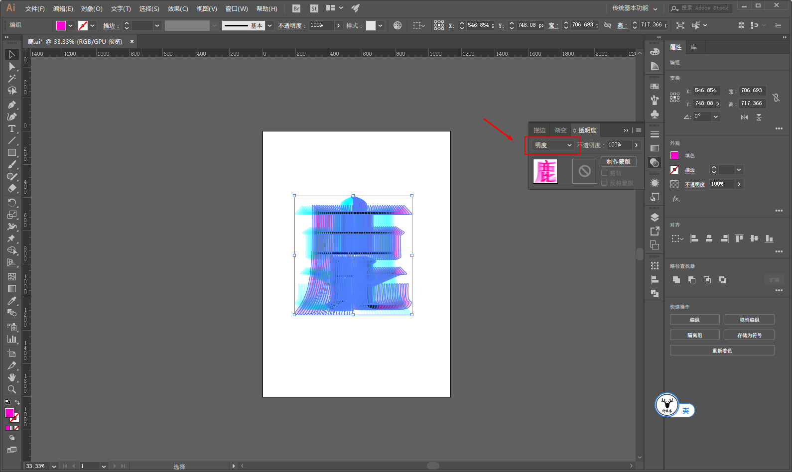 取消编组以后再将对象的不透明度降低,这样对象看起来就是一层一层的了,同时也可以更改一下混合模式: