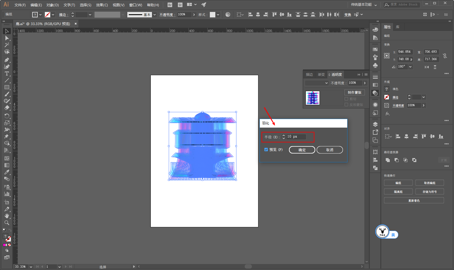 羽化的值也是看着办就好,目的只是为了增加对象的模糊的效果: