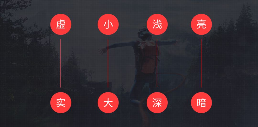 这种虚实对比的形式也是视觉元素差异化体现形式之一,很直观的提升了整体的视觉层次感,包括在一些文字排版也很实用。所以当我们的作品整体视觉层次感不够强烈时,不妨试试通过营造视觉元素差异化的形式进行提升和改变,只是既然用了这种表现手法,就要做的足够明显,否则只会适得其反。