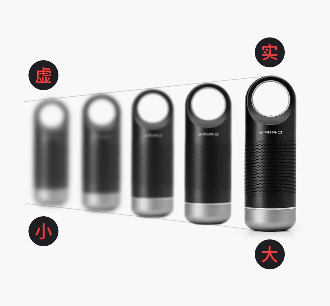 这里做了点透视效果,结合大小、虚实的变化,是不是有种由近到远的既视感,通过营造视觉元素的差异化,视觉层次感也更加强烈,这种虚实结合的形式在设计中也非常实用,下面我们再看案例:
