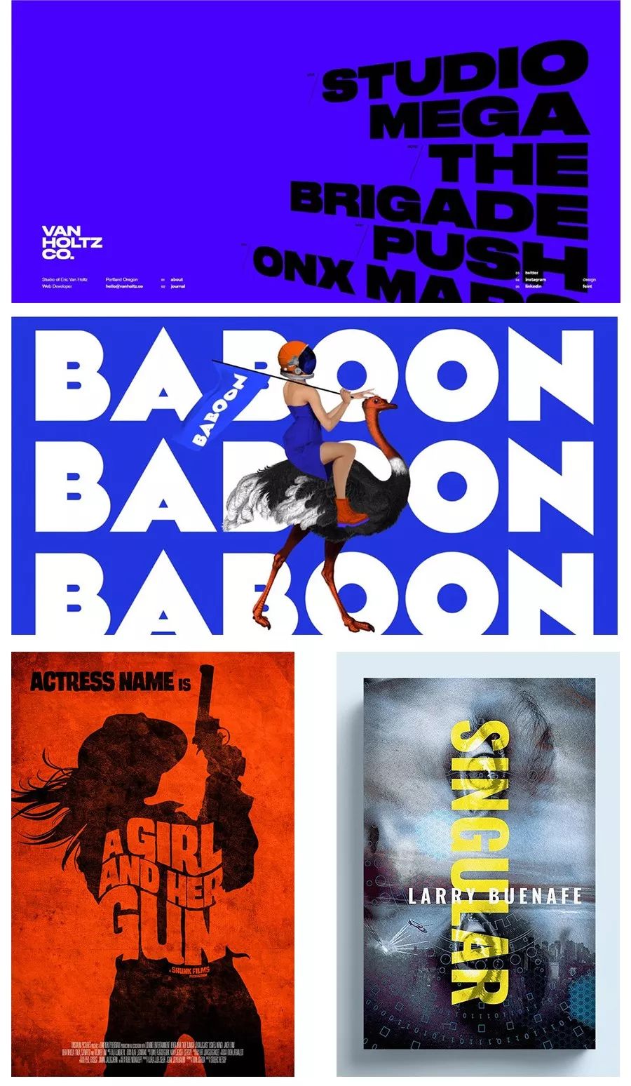 这些字体充满着地下风情,显露着朋克的态度,很酷且对于排版的参照物的要求要非常高。