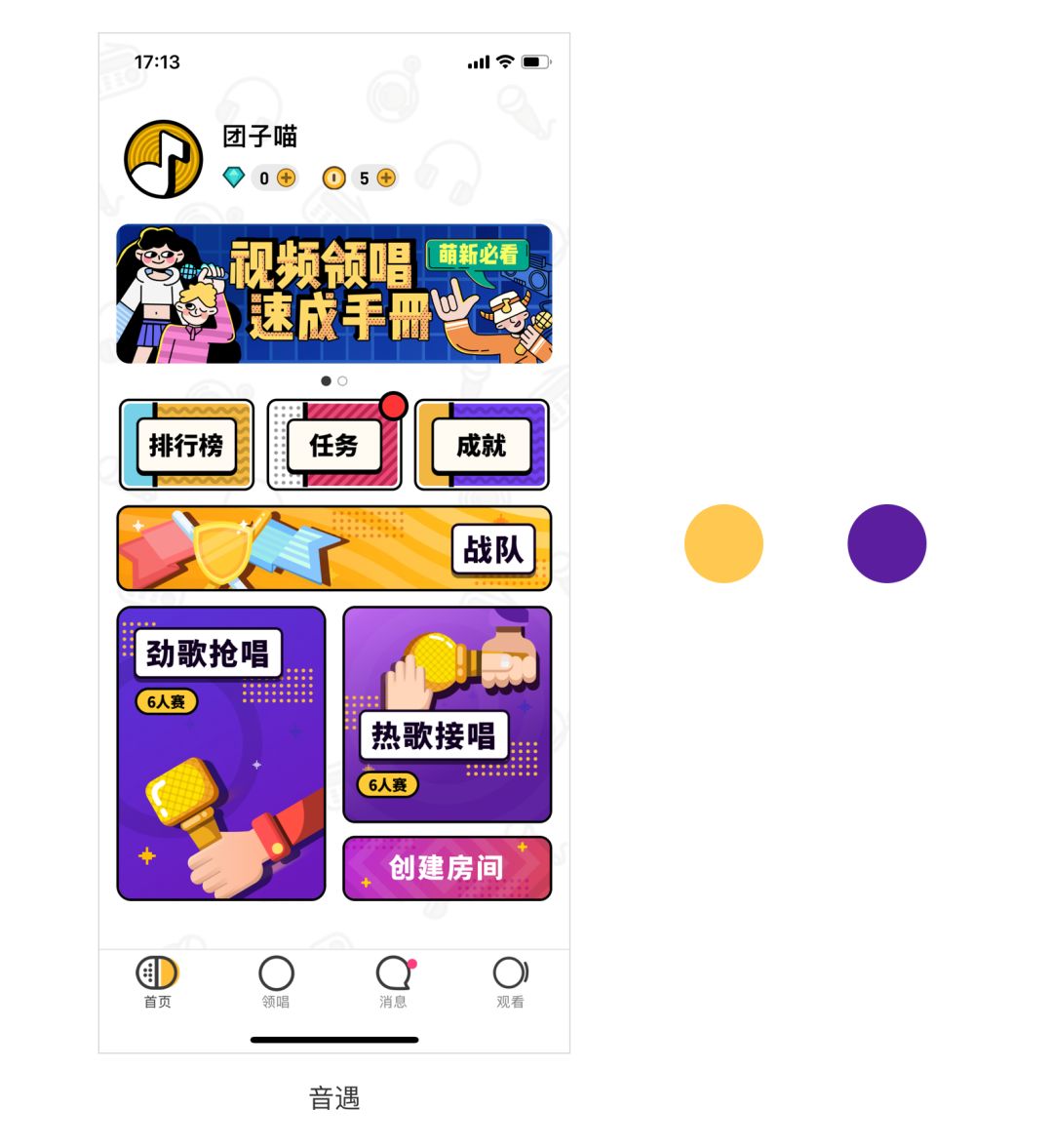 这种使用的比较少,但是很容易就能够让用户记住,因此音遇的这种孟菲斯风格目前在是市面上还是比较少见的,但它的整体风格让用户一打开就能够记住。