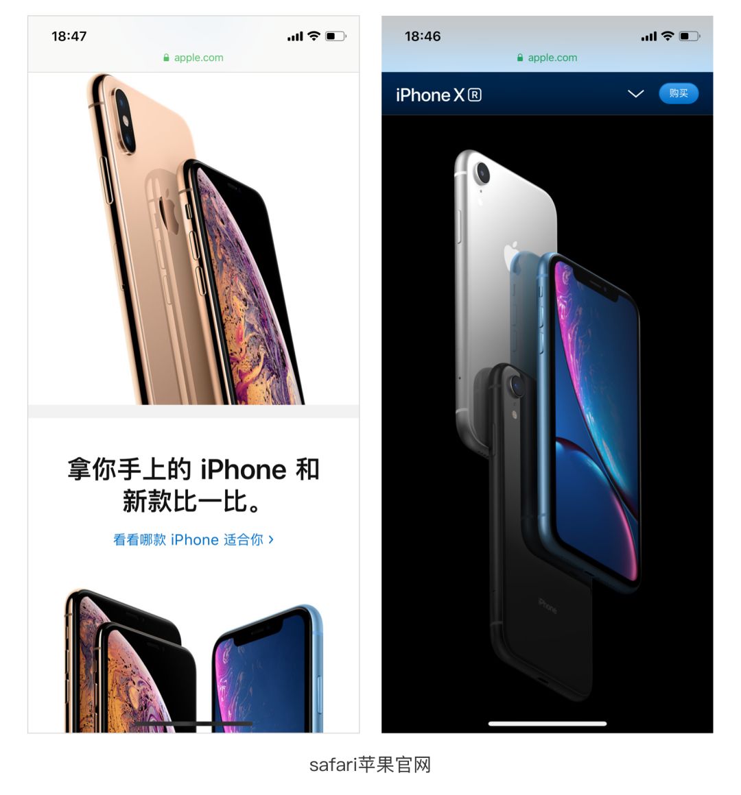 深浅色搭配最经典的案例是苹果的产品图,而最直观给人的感受是高大上,浅色的背景搭配深色的产品,较多的空间留白,页面整体稳定平衡,同时突出产品主体 。