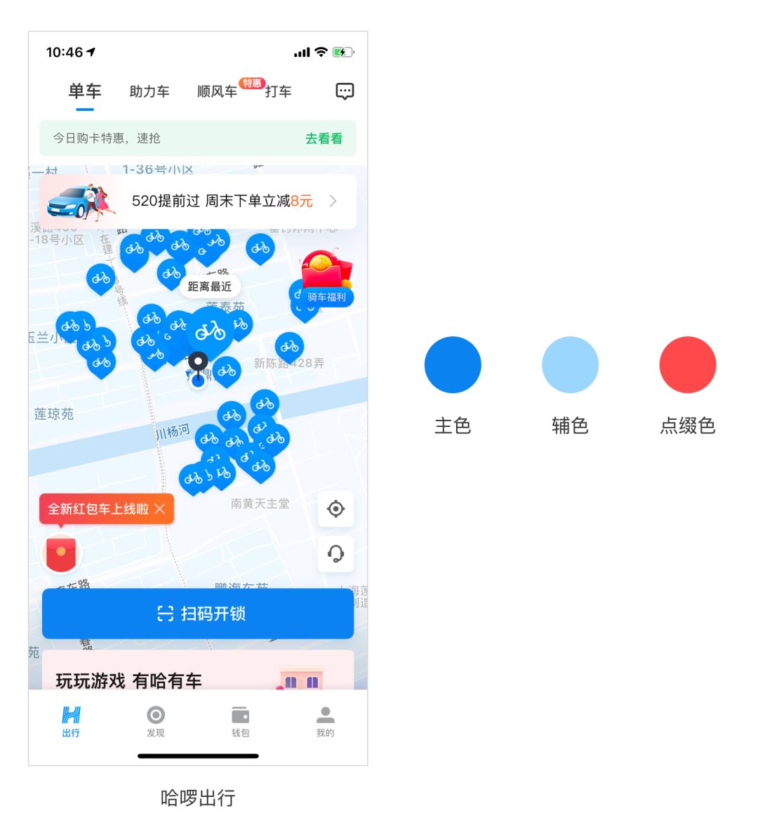 那么我们的主色从哪里来选择呢?最常见以及最普遍的用法就是讲产品LOGO的颜色来作为主题色,这样能够有效的保持品牌基金和视觉上的一致性。如下图所示: