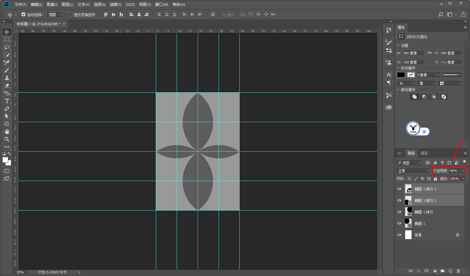 剩余的三个圆也是同样的道理,这里就不重复啦,为了方便观察可以暂时将不透明度降低: