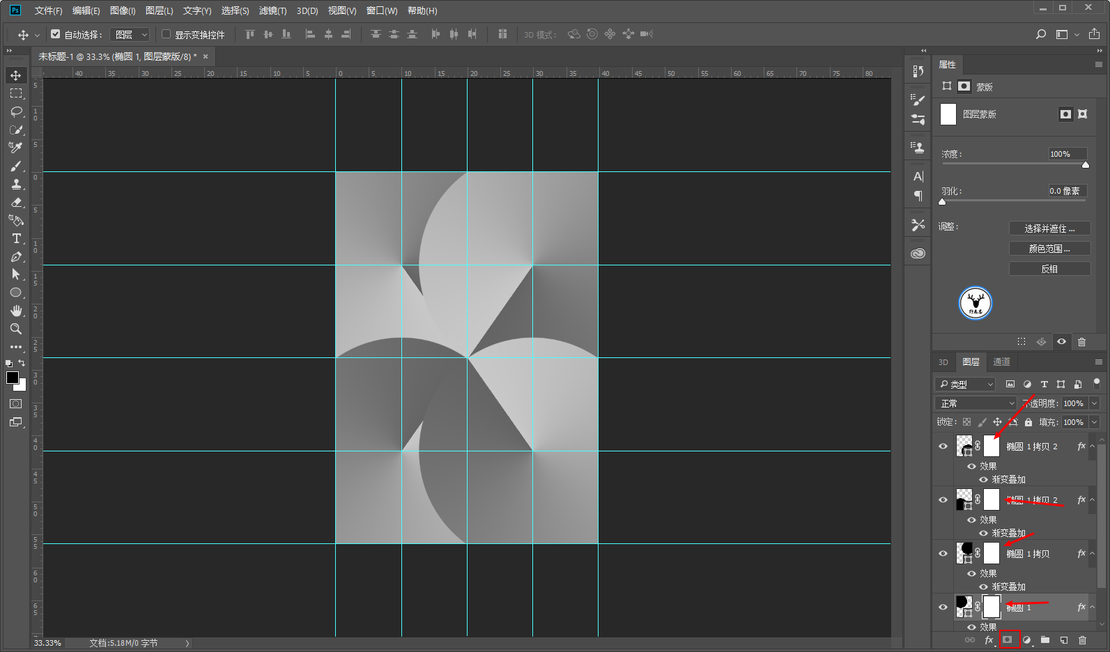 下面的步骤很重要,给所有的圆图层添加图层蒙版: