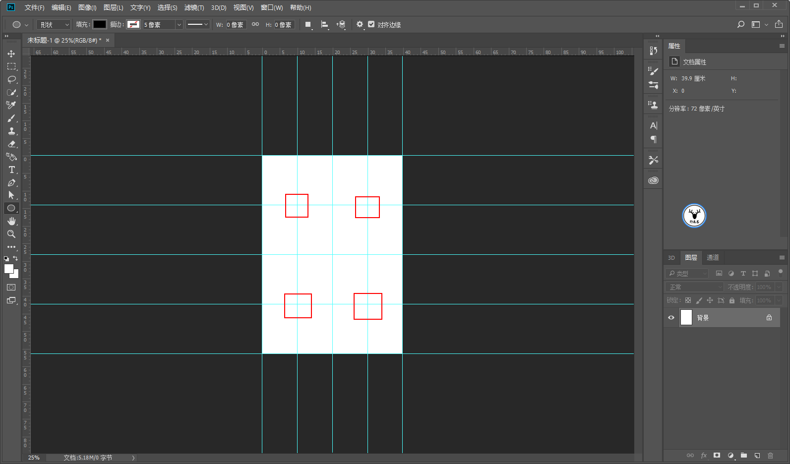 这样我们的画布就等分成了4份,并且每一份的中心点也都标记出来了: