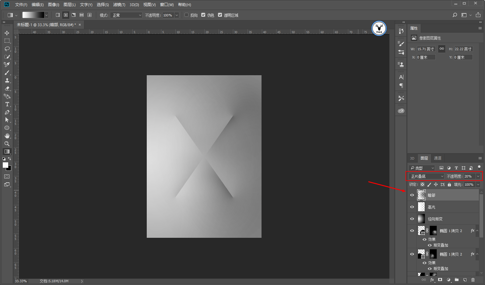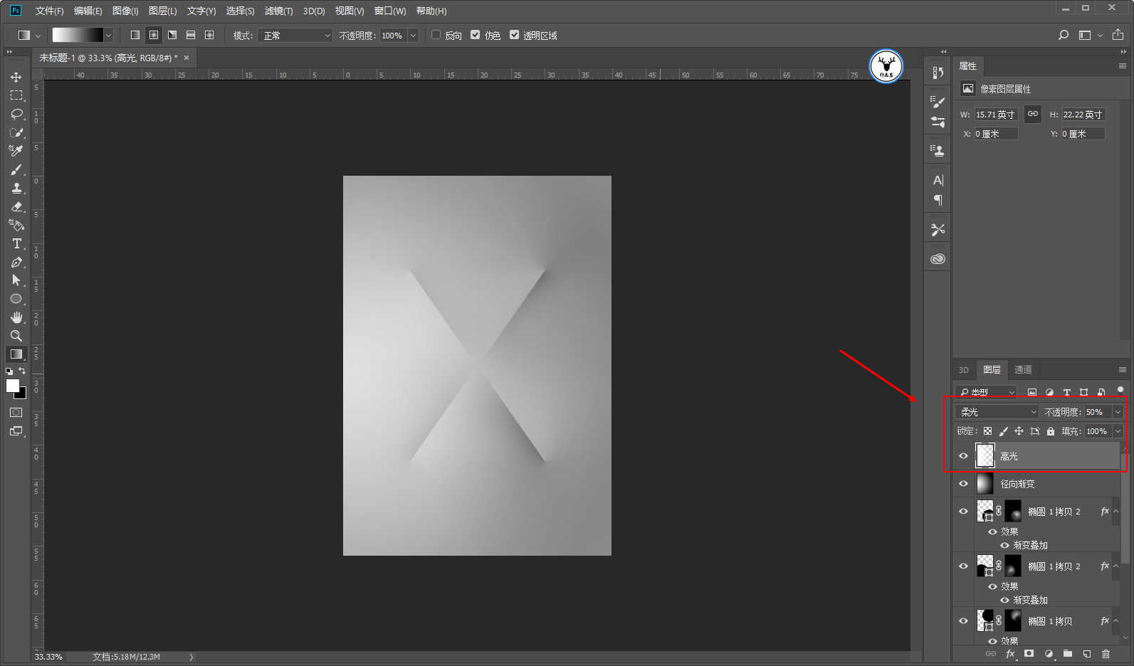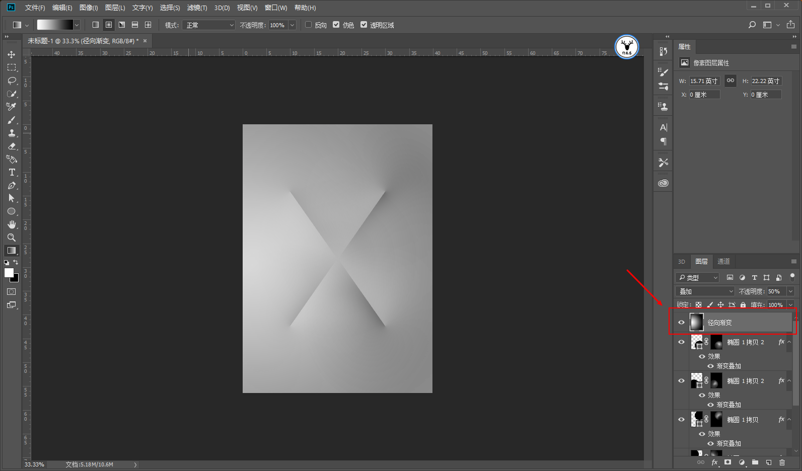 当然你也可以像原图一样去重新构造光源以及阴影,例如刷一个径向渐变图层,降低不透明度,将混合模式改为叠加:
