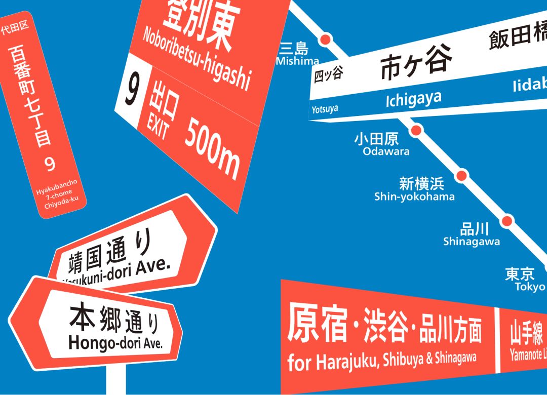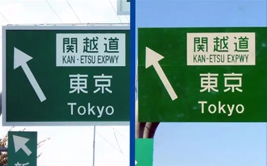 在日本,约从2011年开始,高速公路引导标识的文字变为Hiragino Kaku Gothic。标识中使用的“京”字实际上有2种,照片右侧是东京的“京”。其原因在于中央的四角部分和东京(“東京”)的“東”字对齐。设计要项中注明了东京用这种,京都的“京”用另一种。但是逐渐会混淆,也有使用左侧字体的例子。这取决于制作方的选择。以前用反光带手工制作文字时,我认为与“東”在口的高度上对齐的右侧的“京”较容易操作。但是因为有两种“京”,所以会有这样用错的情况。现在随着时代和技术的变化,文字制作已经数字化了,所以我们在设计中能够注重细节。因此,置换为Hiragino Kaku Gothic可以说是一个趋势性的结果,与易于制作相比,人们会选择具有良好外观平衡的字体。易于制作和作为公共广告牌真正具有易读性,完全是两回事。