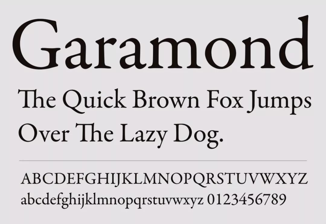 Garamond16世纪由法国活字铸造从业者Claude Garamond创作。自那时起,产生了以Old Serif为代表的许多派生字体,电脑上的字体中也有各种Garamond变体。