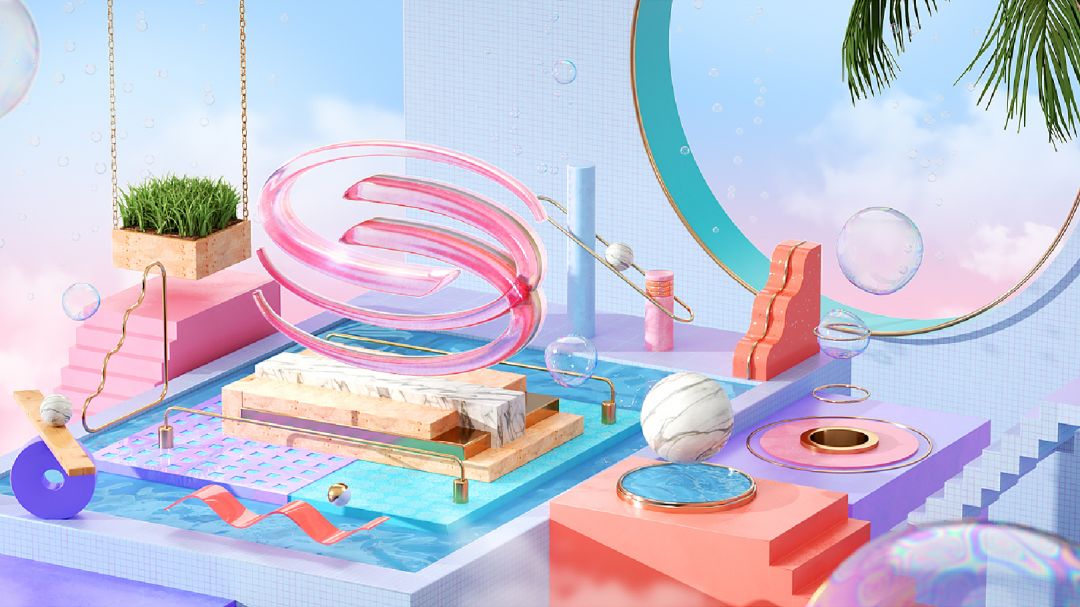 例如漂浮的水滴和圆球体、正方体,则是半透明质地