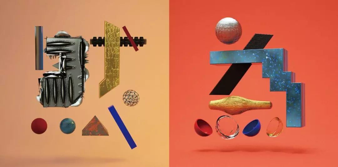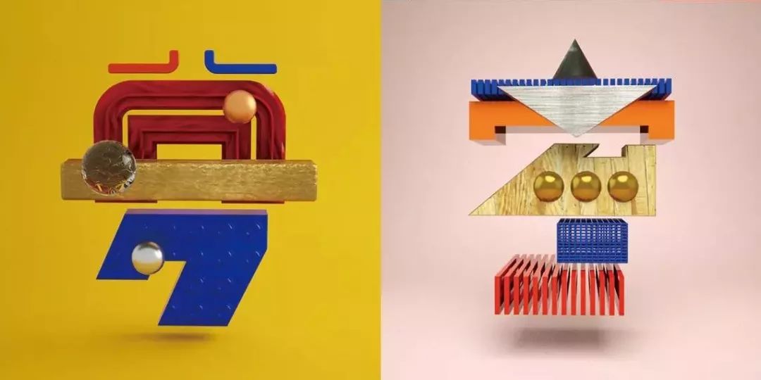 他选择了一些现代生活中的物件,这些物件造型与字体的笔画相当,AD518猜想他用的应该是C4D软件吧。