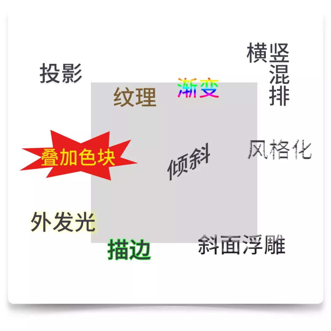 文字字号差不多,同时采用了不同的字效,不能很好的确认谁是主标题,并且字体种类也非常多。