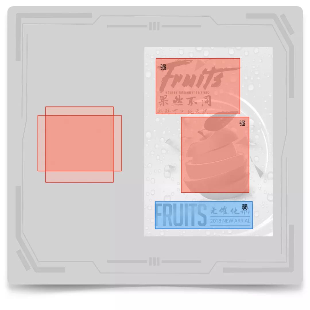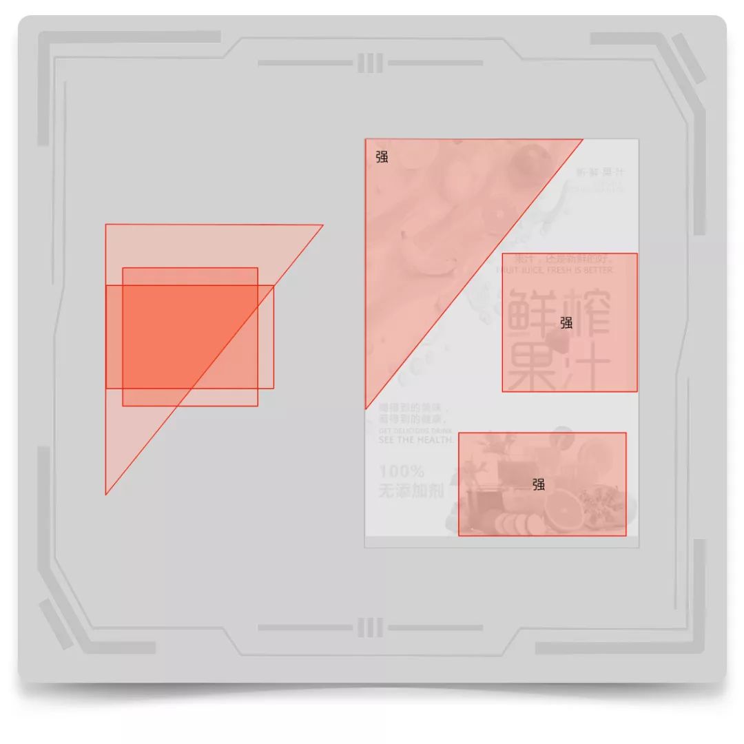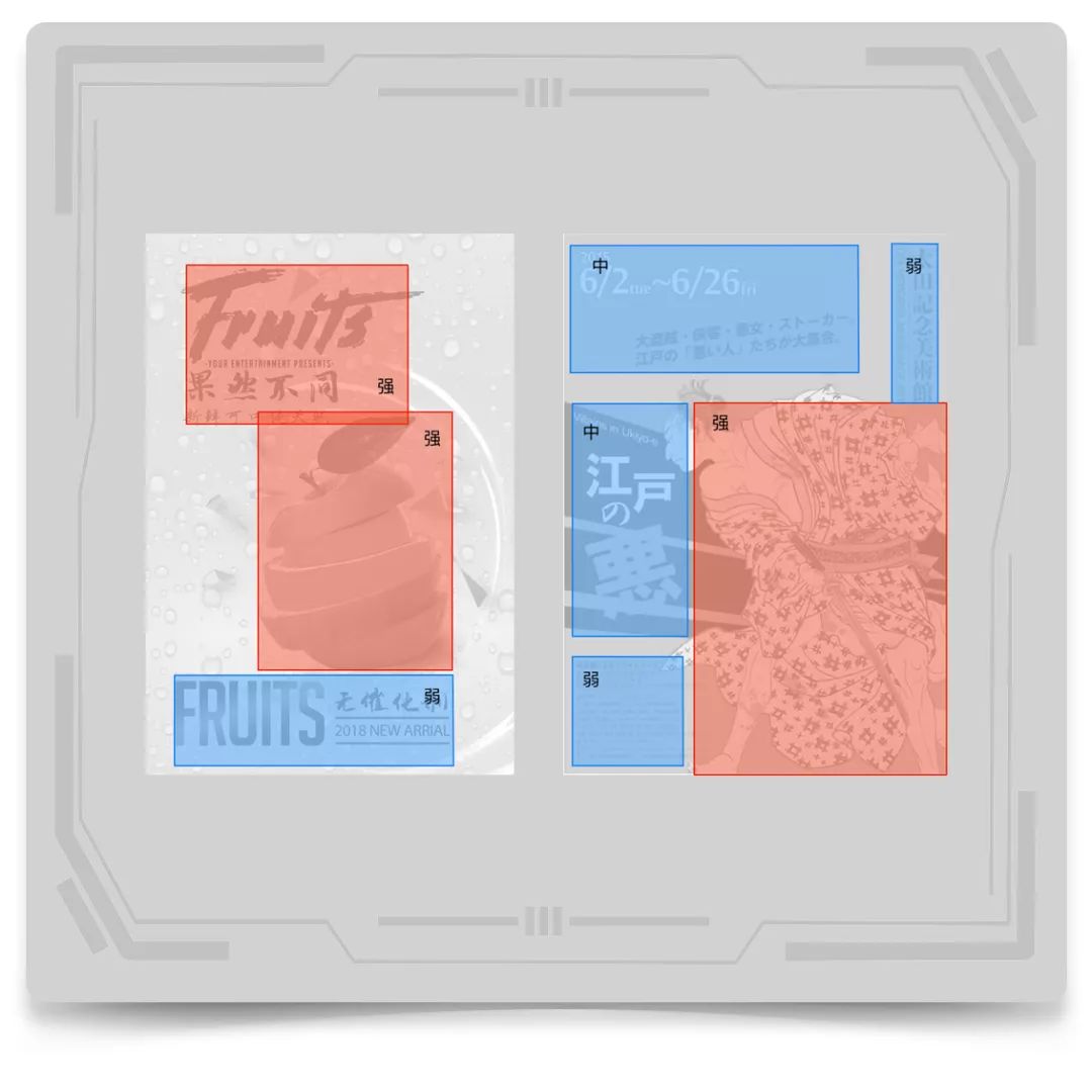 三组元素都呈现出较为抢眼的属性,并且其中有两组元素视觉面积几乎相等。