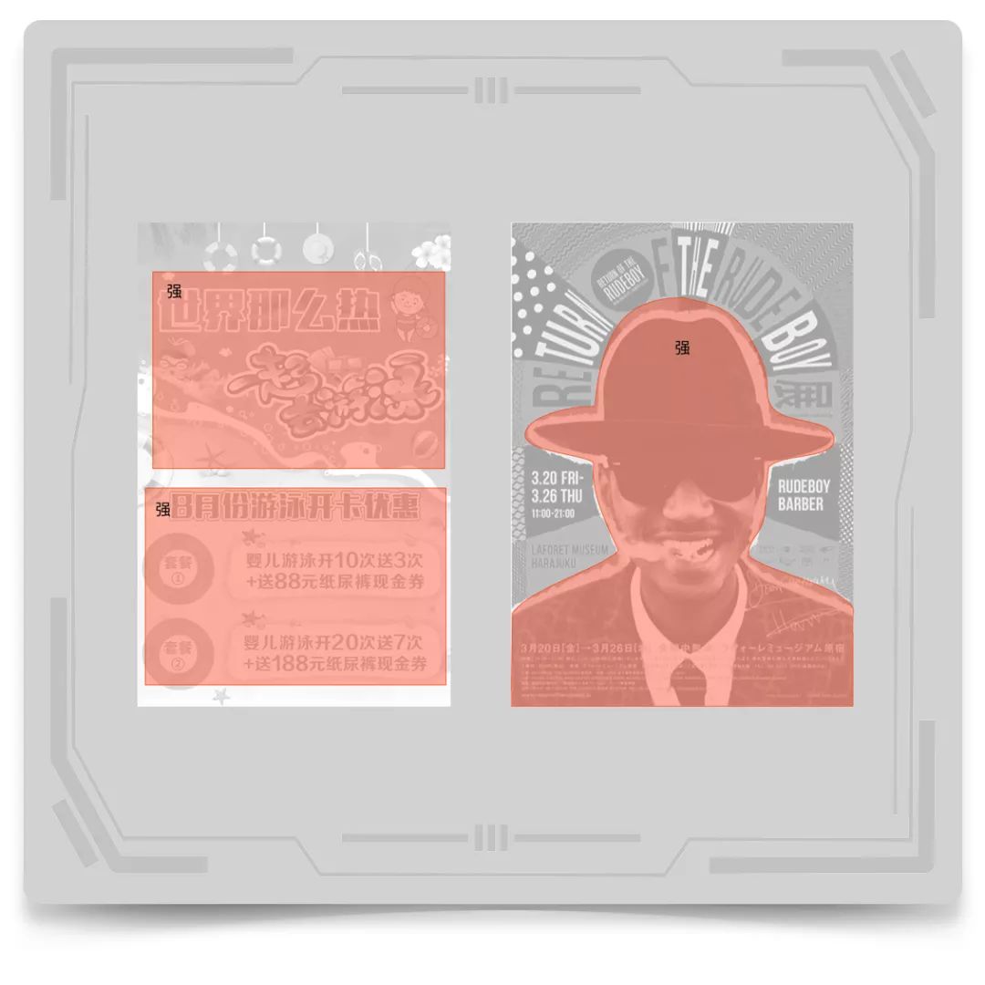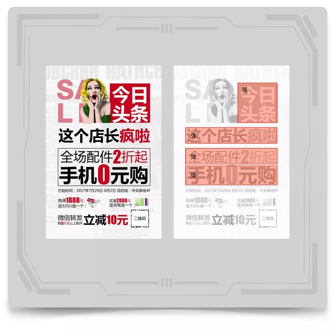 很显然,在画面中视觉面积更大的物体会优先被我们注意到,说到“放大”这个操作,我们头脑中应该会立即浮现出甲方大人那句“logo要大”“标题要大”“卖点要大”