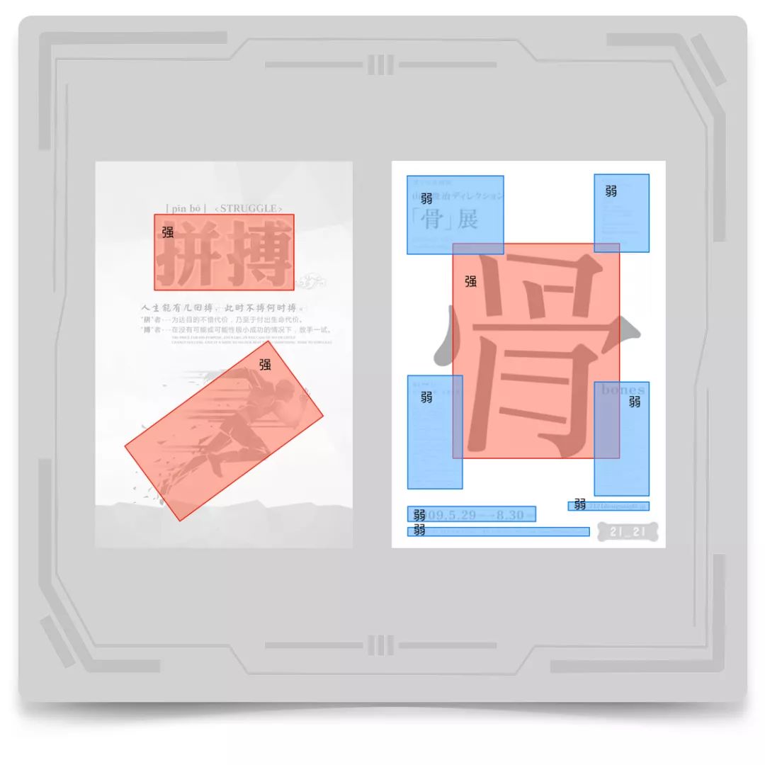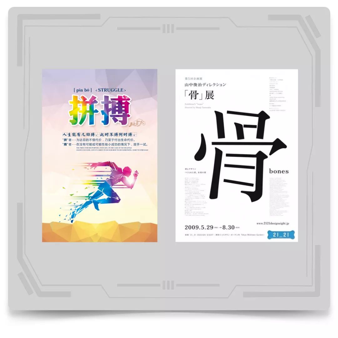 文字很整齐的排在了四角,而中间最大的面积放了一个骨字,特别明显。