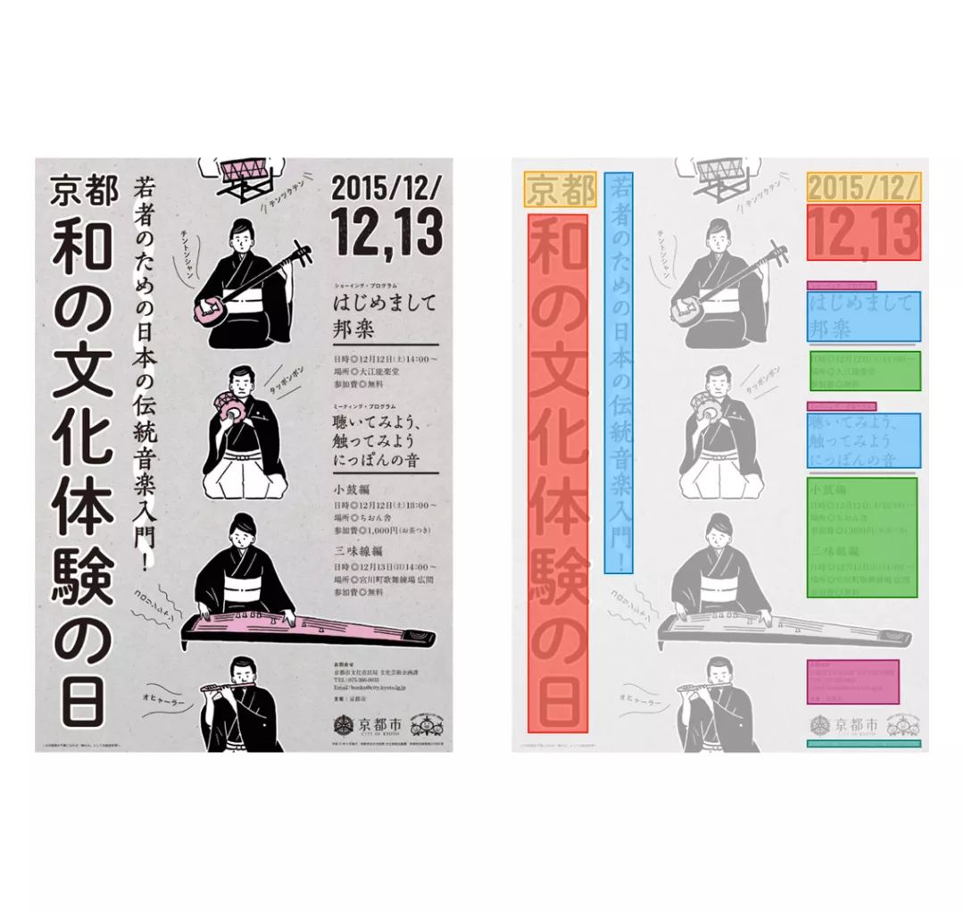 我们可以将其总结成一句话,那就是一个成熟的平面设计作品,应该具备“良好的视觉层次,并且主次分明。”